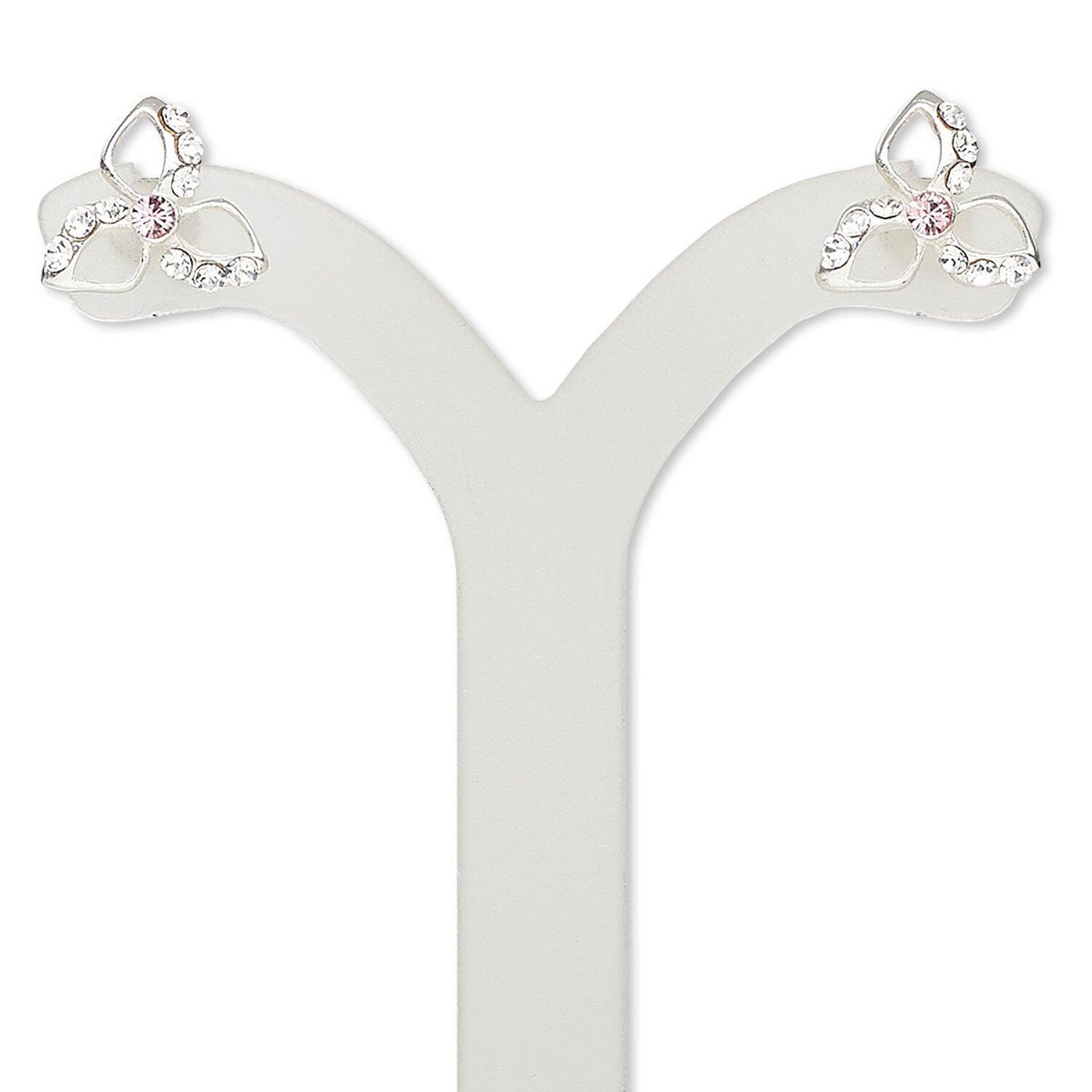 Earstud, Czech glass rhinestone and sterling silver, clear and light rose, 11x9mm flower. Sold per pair.