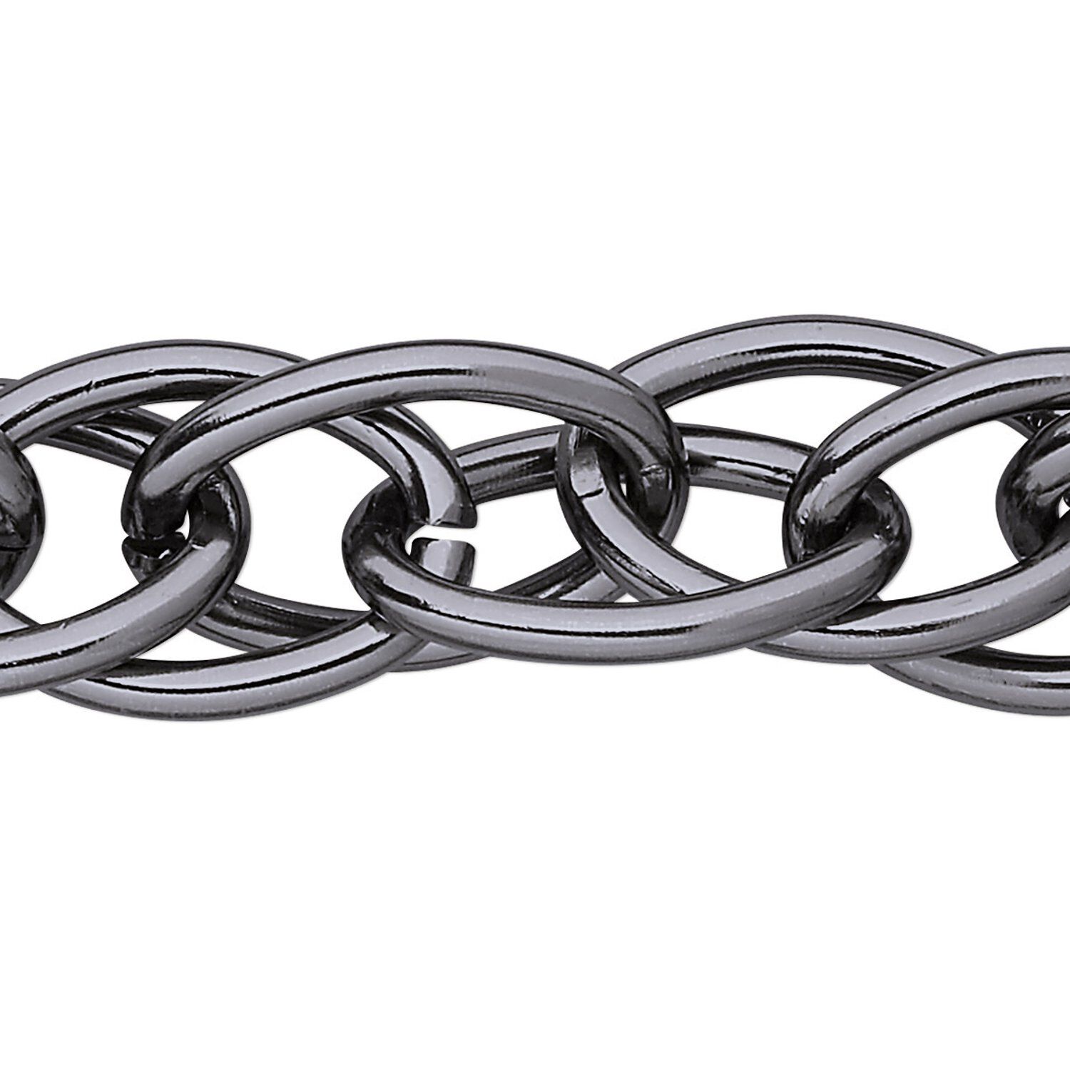 Chain 1pkg1 cable, 17mm double, aluminum / anodized gunmetal 25 foot unfinished