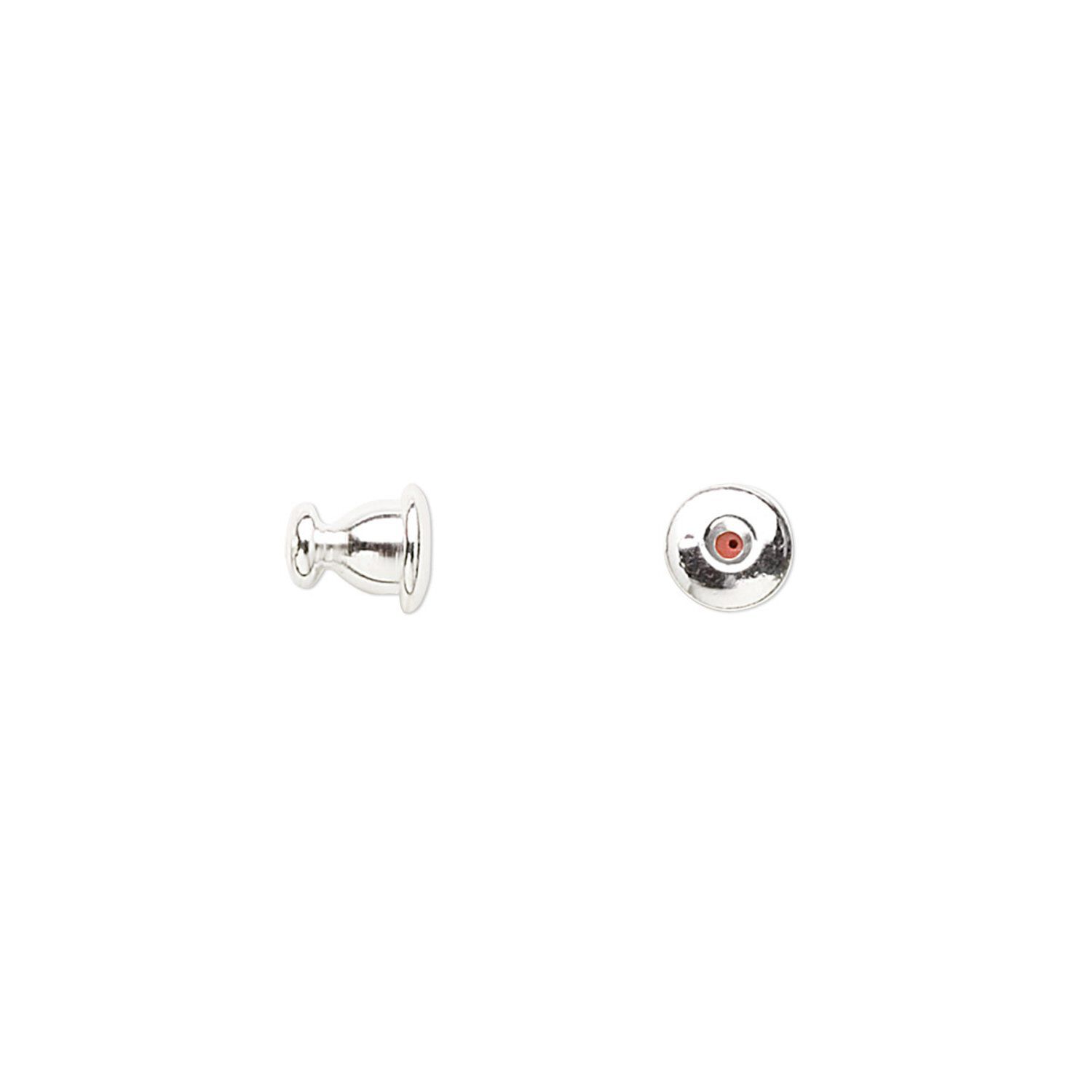 Stick pin clutch, silver-finished brass, 6x5.5mm open-ended. Sold per pkg of 100.