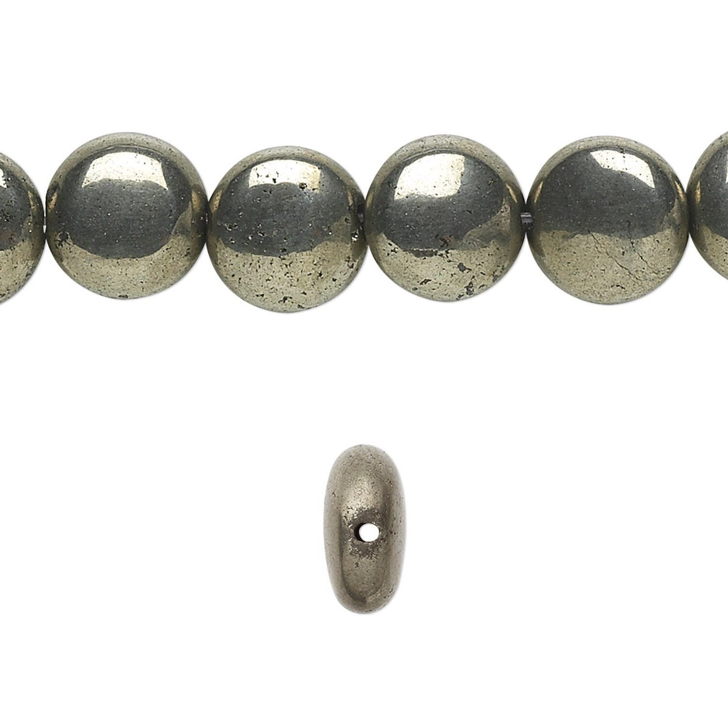 Pyrite 1pkg1, flat round bead 15.5-16 inch 10mm