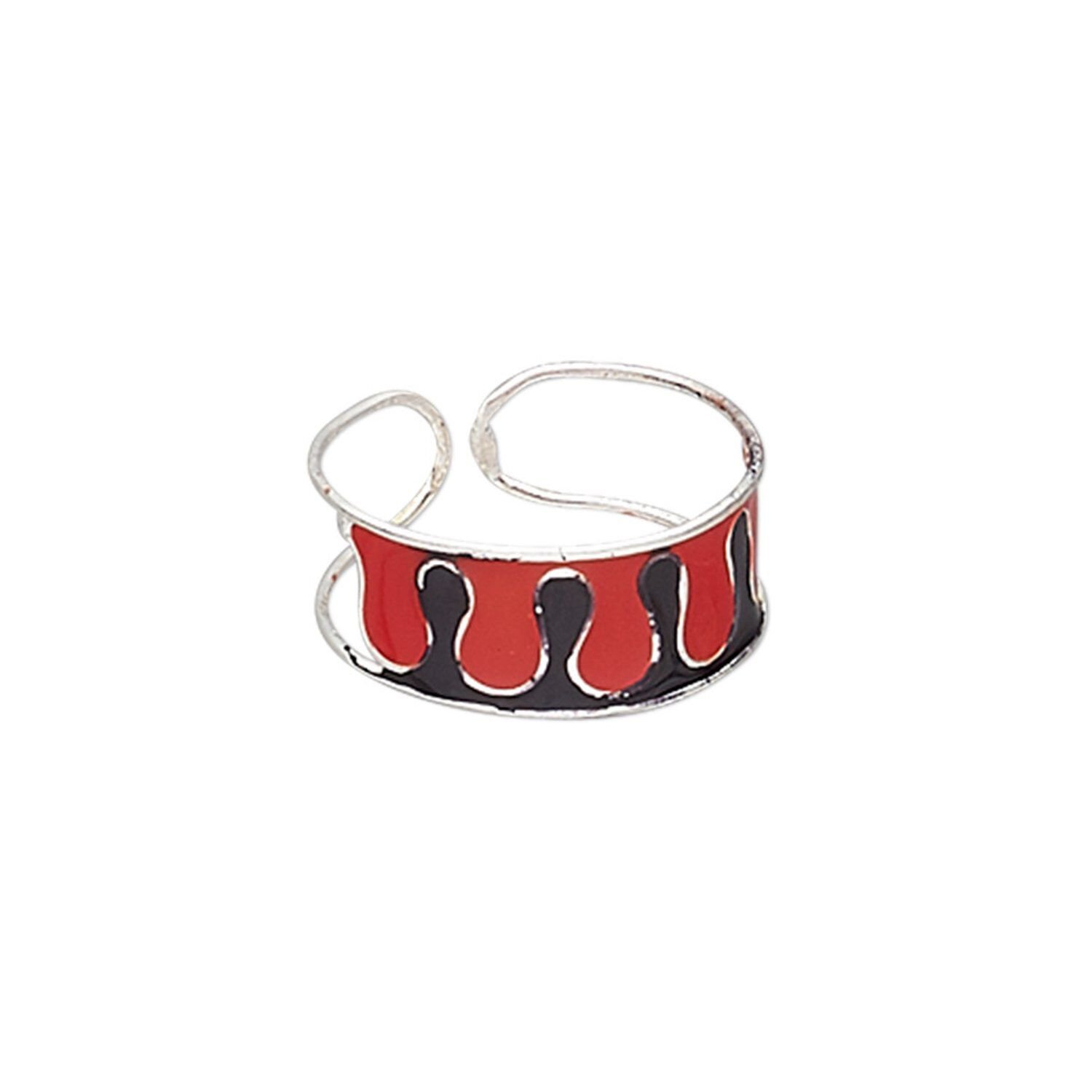 With rockabilly flair, this silver-plated brass ring features red and black enamel in a seemingly dripping design. Easily adjust the ring base to fit a wide range of toe or finger sizes.