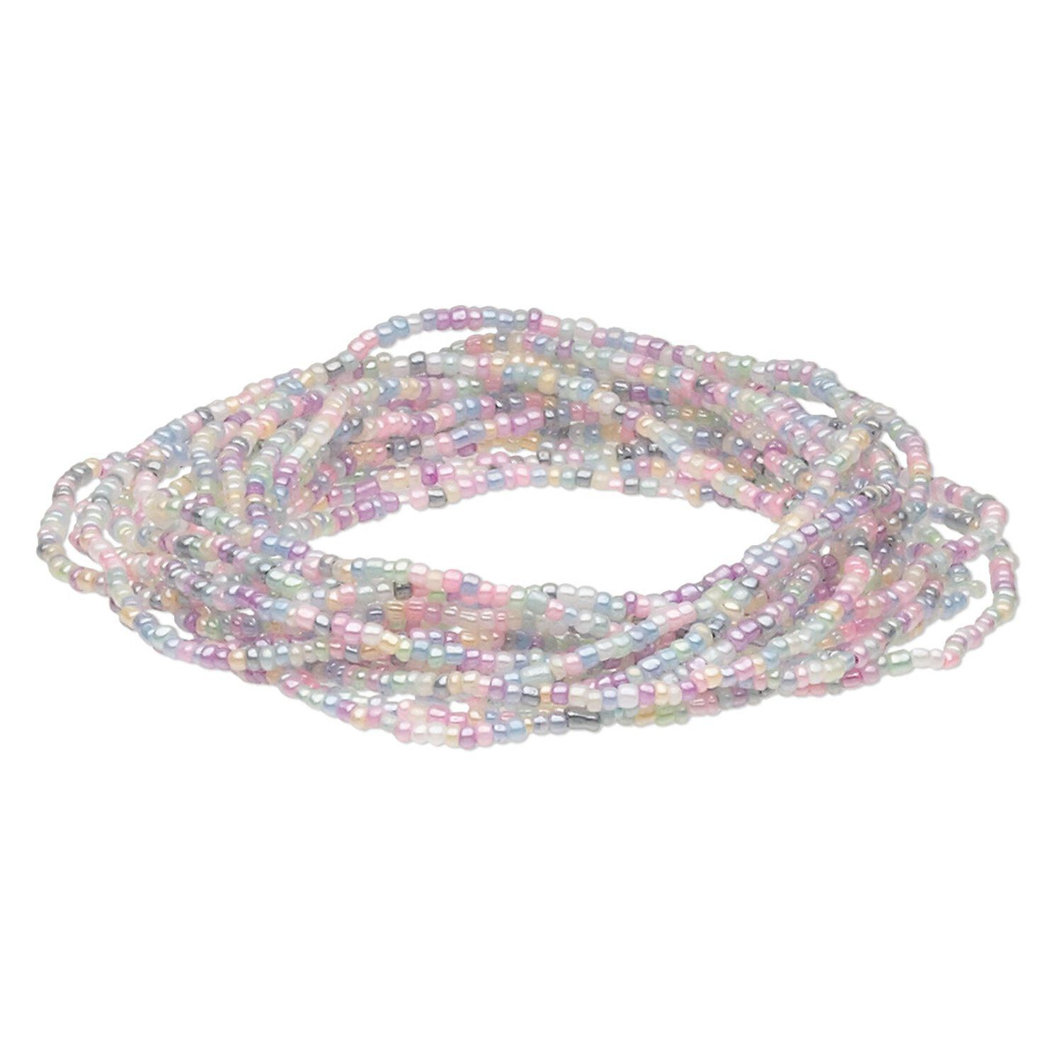 Bracelet, Everyday Jewelry, stretch, glass, ceylon pastel tones, #11 and 2x1mm-3x2mm rounds, 7-1/2 inches. Sold per pkg of 2.