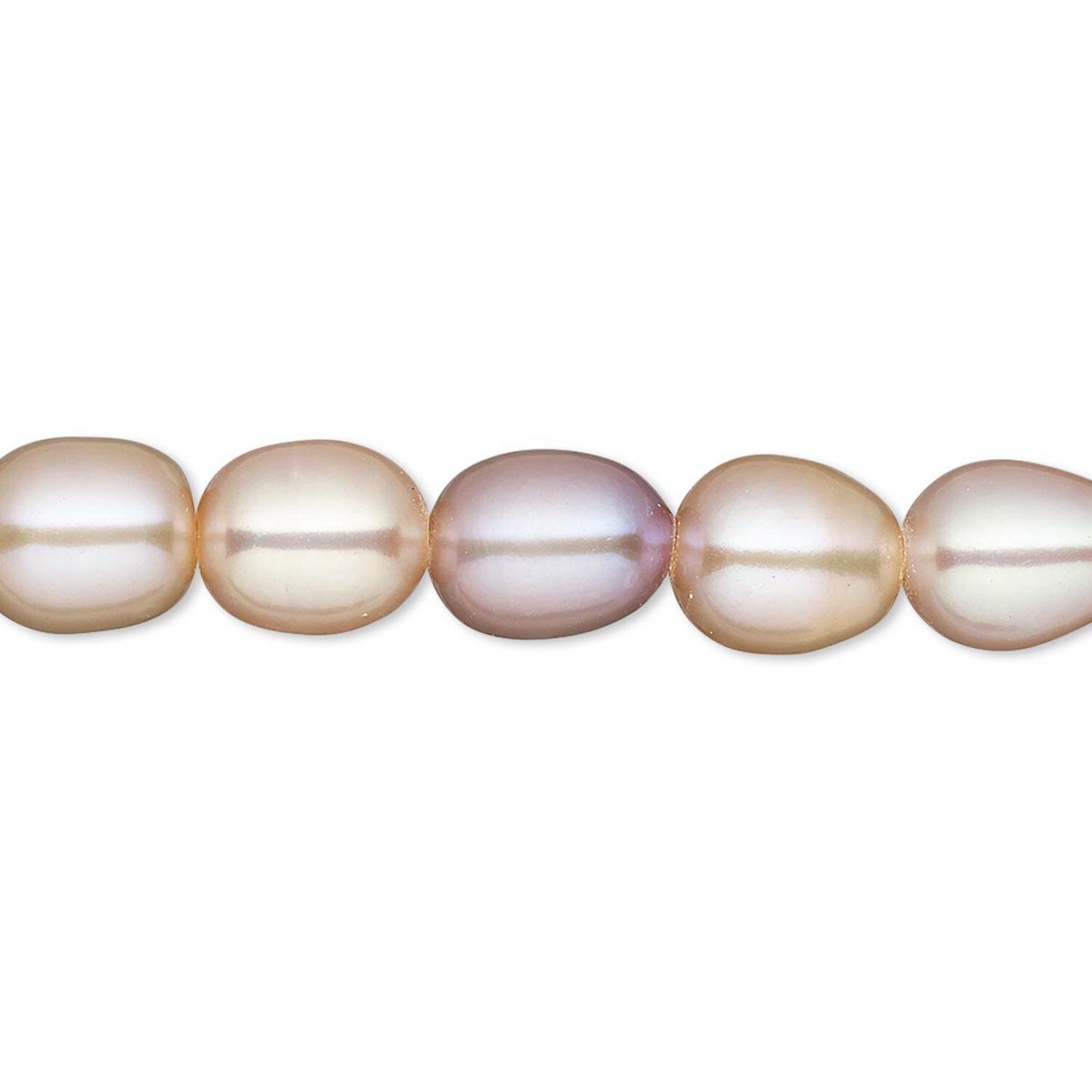Pearl, White Lotus™, cultured freshwater, peach and mauve, 7.5-8mm rice, C grade, Mohs hardness 2-1/2 to 4. Sold per 15-1/2" to 16" strand.