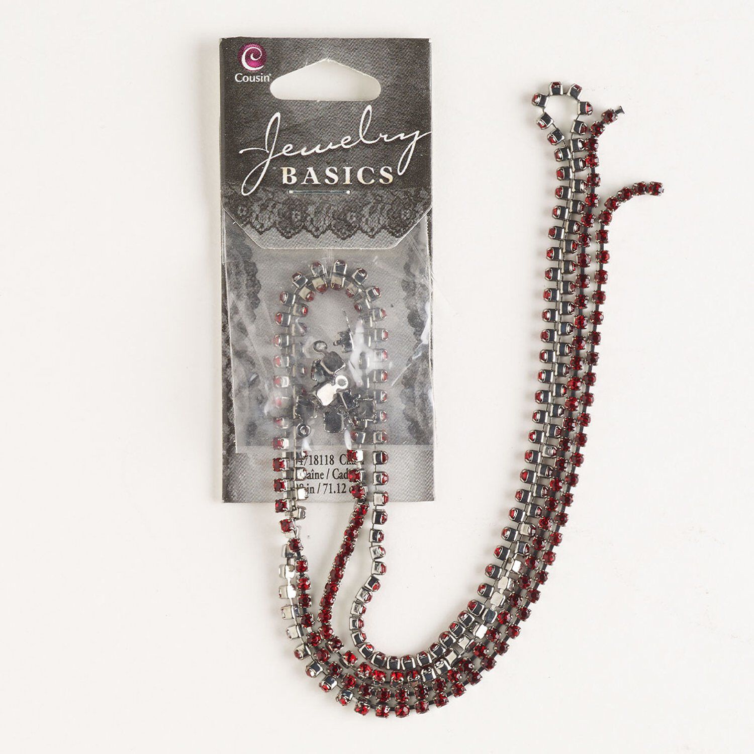 Cupchain, imitation rhodium-finished brass and glass, red, 2mm wide, 28 inches with (8) connectors. Sold individually.