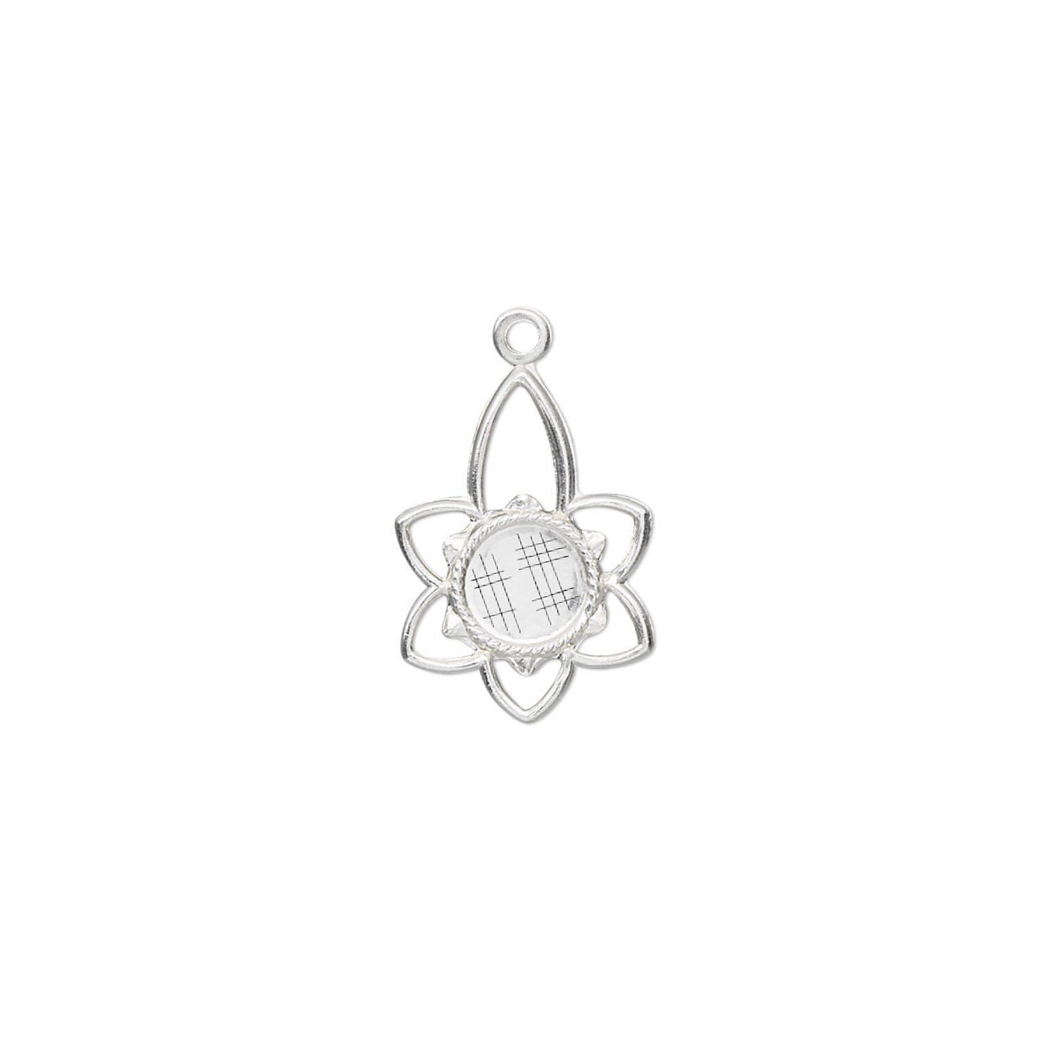 Drop, sterling silver, 16x10mm flower with 5mm round setting. Sold per pkg of 2.