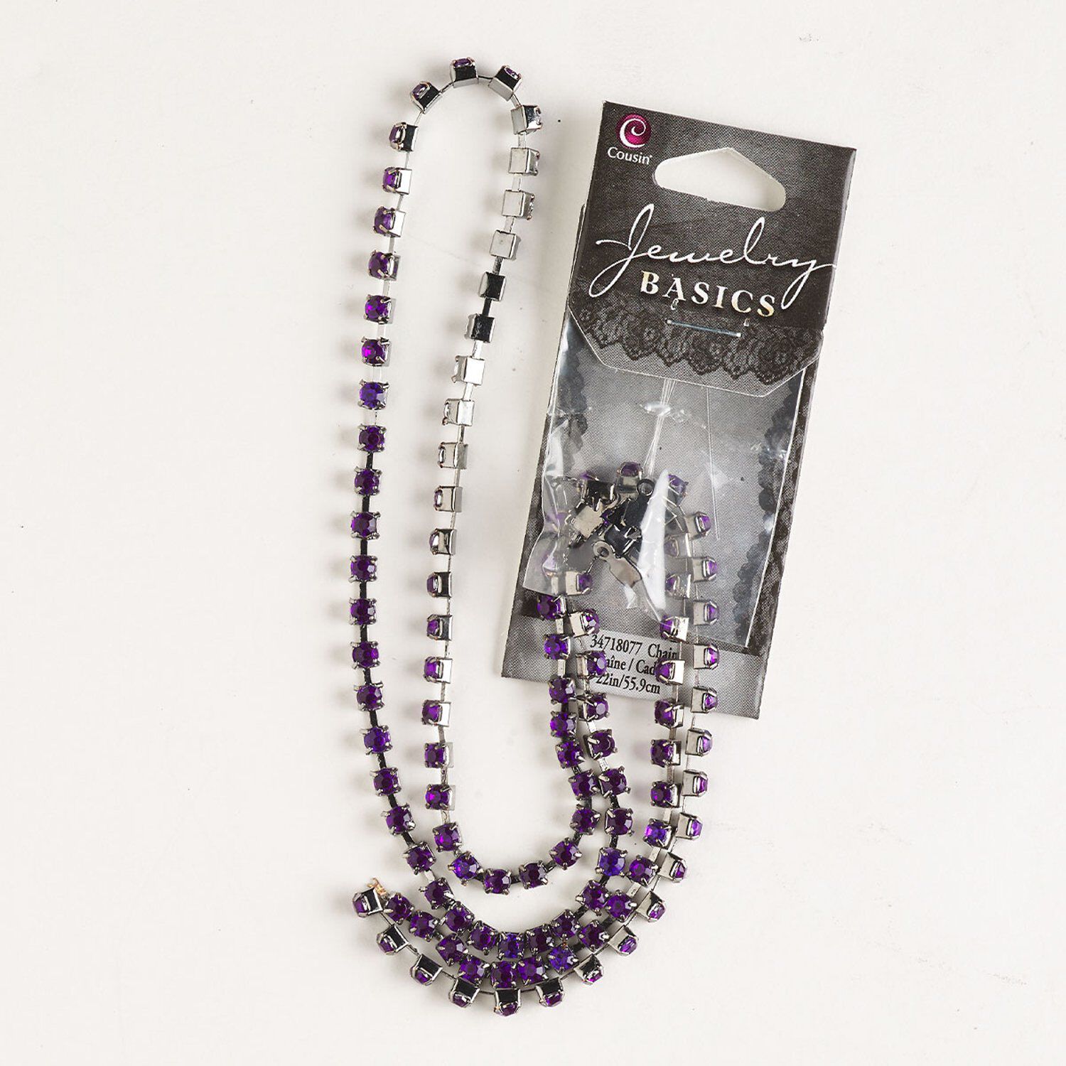 Cupchain, imitation rhodium-finished brass and glass, purple, 3mm wide, 22 inches with (8) connectors. Sold individually.
