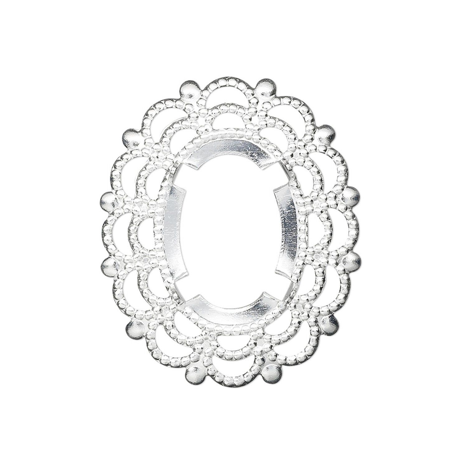 Classical style inspired by the Victorian era. Lightweight design with scalloped edges creates a formal setting for cabochons and cameos.