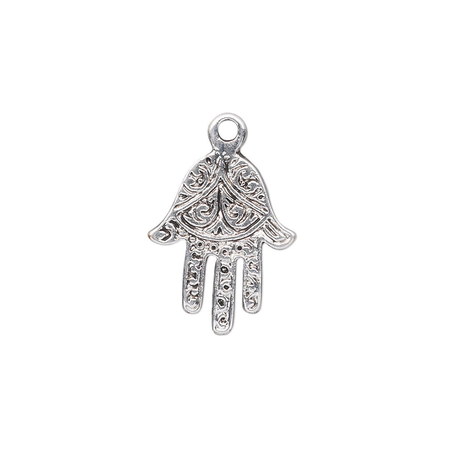 Drop, antique silver-plated "pewter" (zinc-based alloy), 18x14mm single-sided Fatima hand. Sold per pkg of 10.