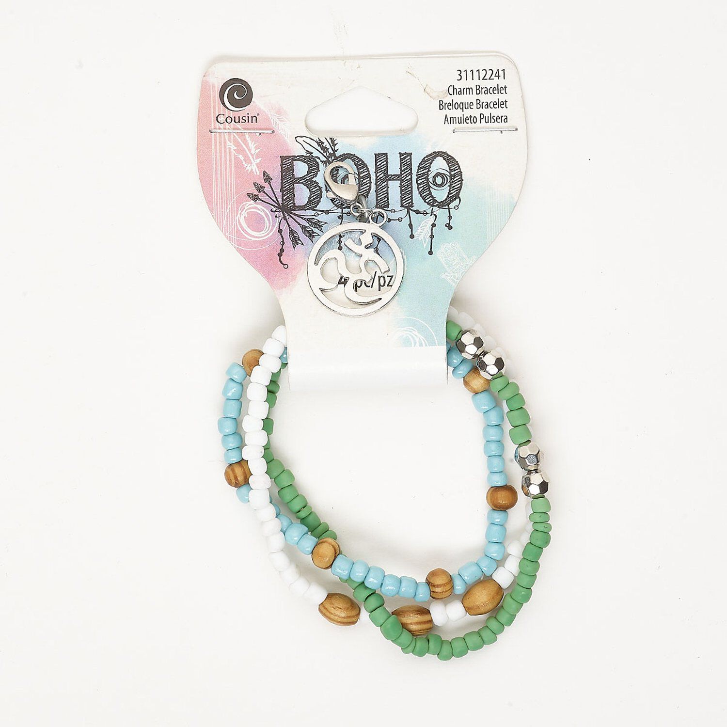Bracelet, stretch, silver-finished steel / wood / acrylic, multicolored, 4-6mm wide with 19mm Om drop; 7 inches. Sold per pkg of 4.