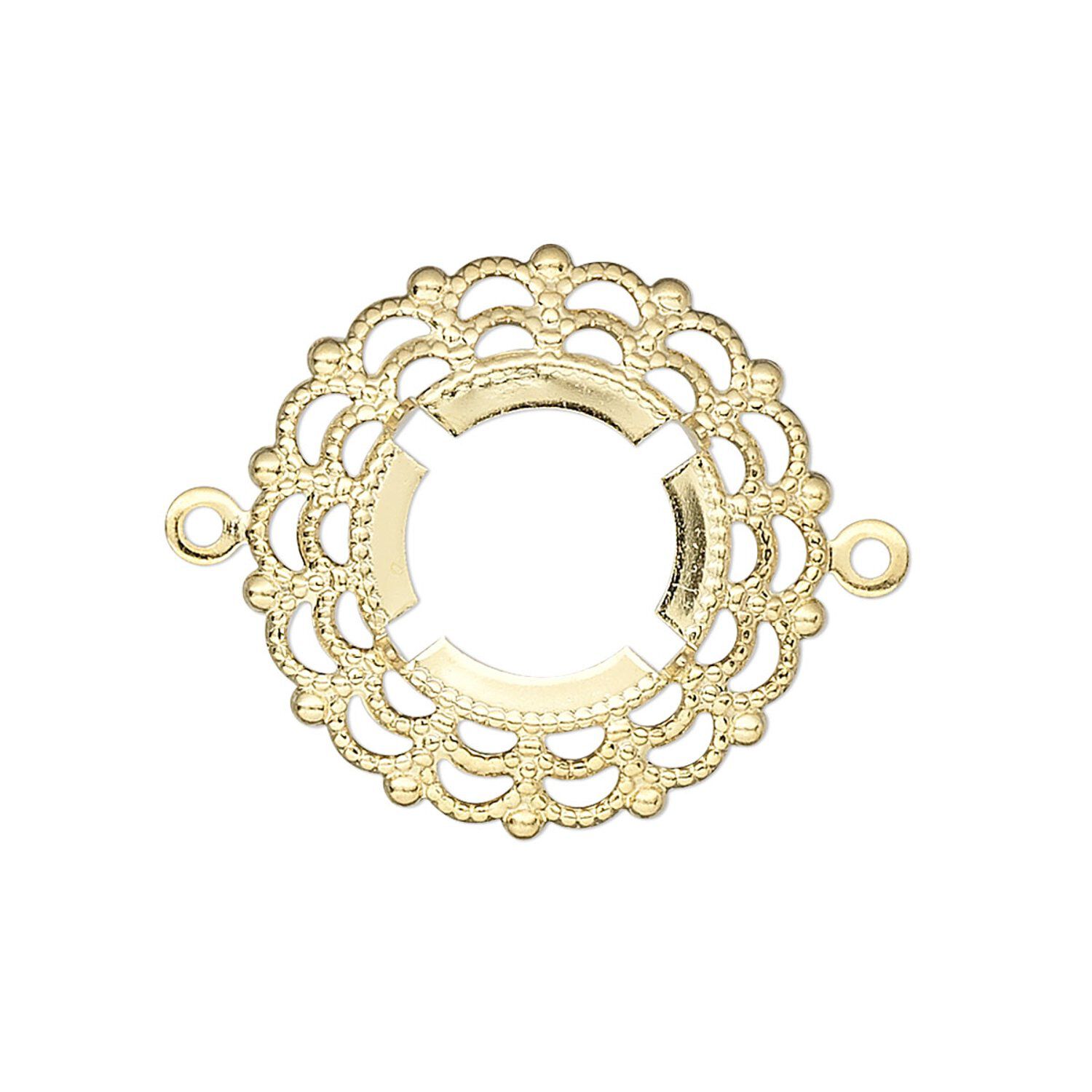 It's easier than ever to set cabochons--gold-plated brass filigree mounting links. The prongs easily bend with chain-nose pliers to hold your cabochon, just add a dab of glue for additional security. With a lightweight and affordable design, you can incorporate multiple links into a single design and create matching jewelry sets.