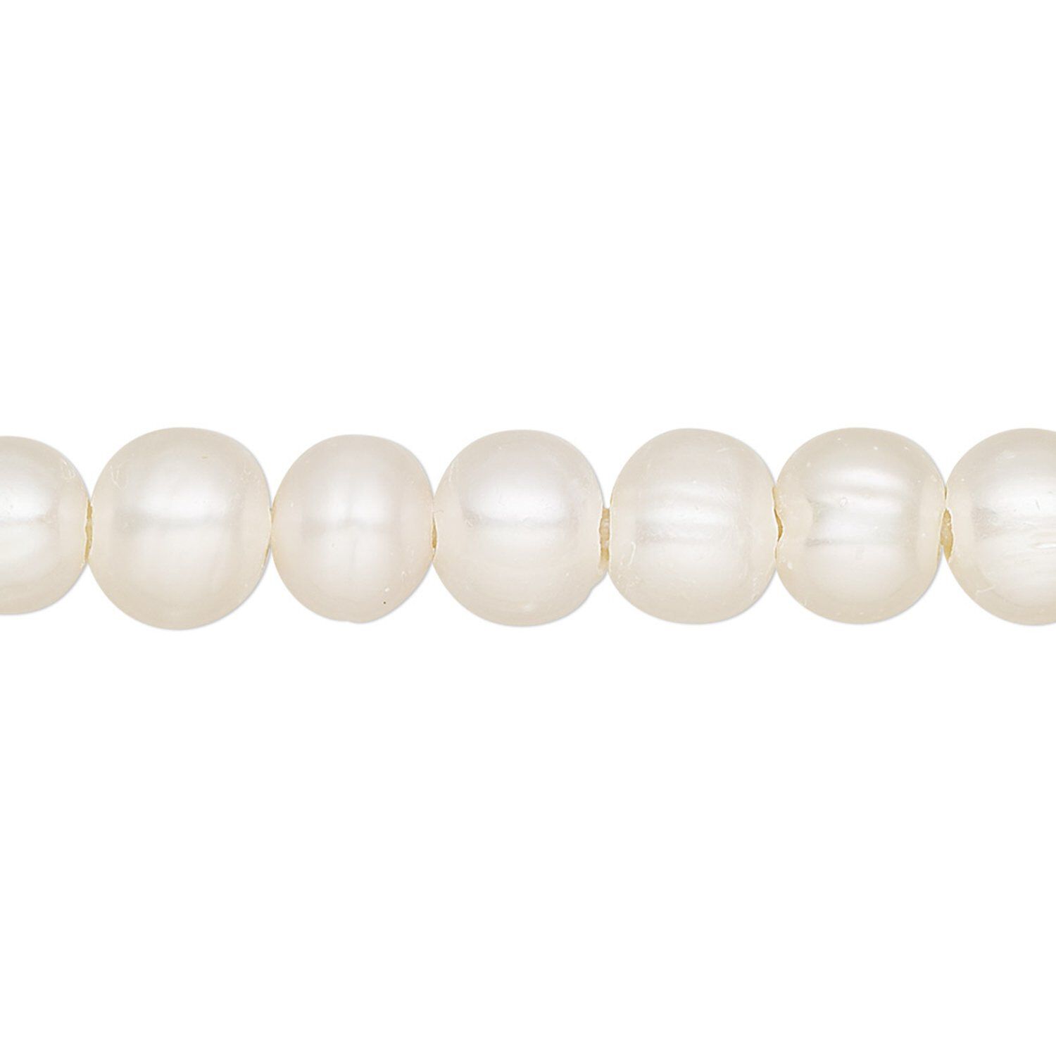 Pearl, cultured freshwater (bleached), white, 7-8.5mm semi-round, C- grade, Mohs hardness 2-1/2 to 4. Sold per 8-inch strand, approximately 27-30 beads.