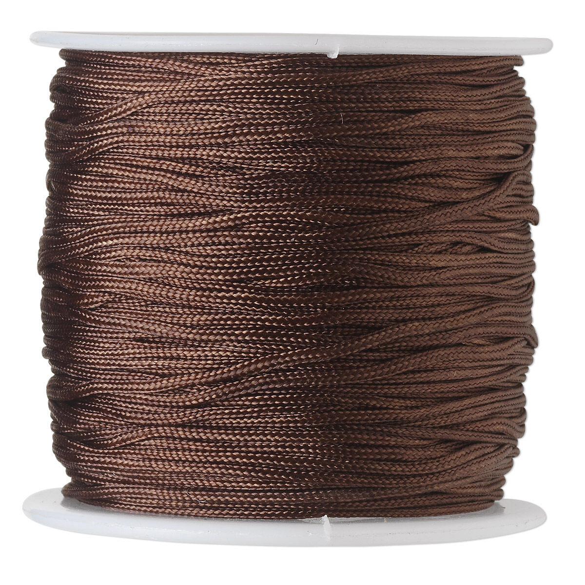 Cord, imitation silk, dark brown, 1mm. Sold per 100-foot spool.