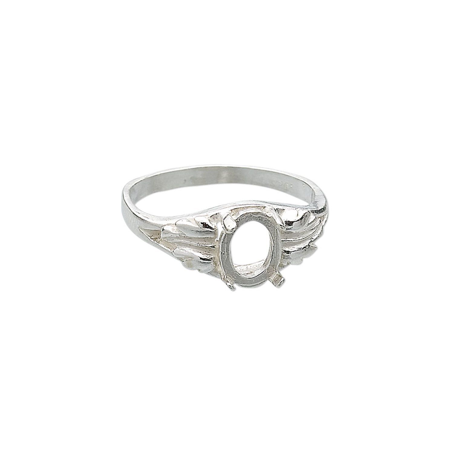 Ring, Sure-Set™, sterling silver, two-leaf band with 8x6mm 4-prong oval setting, size 6. Sold individually.