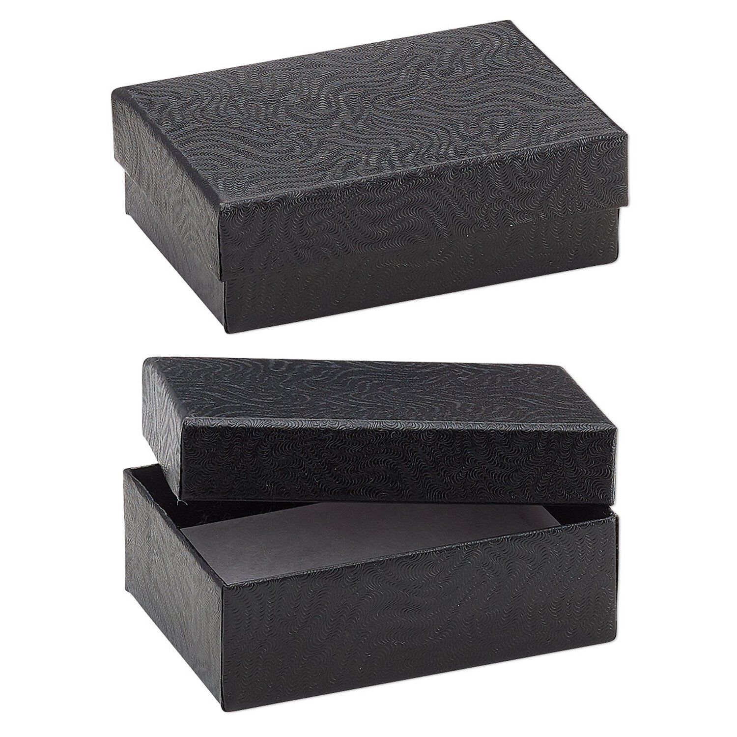 Box, paper, "cotton"-filled, black, 3-1/4 x 2-1/4 x 1-inch rectangle. Sold per pkg of 10.