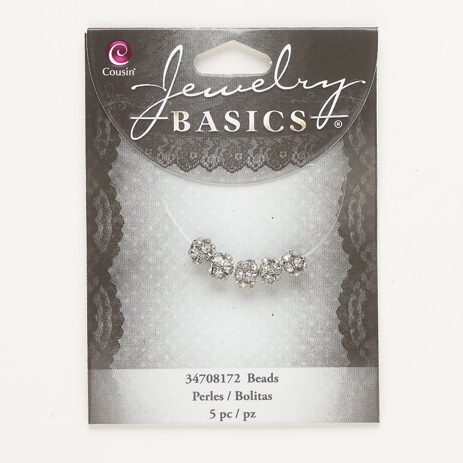 Bead, silver-finished brass and glass, clear, 6mm round. Sold per pkg of 5.