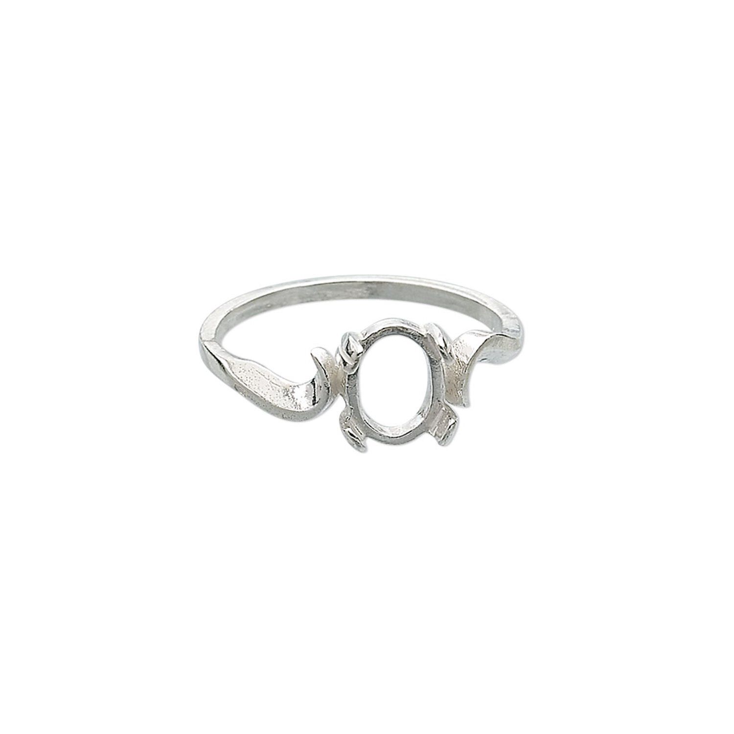 Sure-Set™ ring setting cast in solid sterling silver is pre-notched and easy to set. Four-prong setting allows more light to enter through the back of the mounted stone, creating more sparkle. The classic swirl design is ideal for setting an 8x6mm oval cabochon. Sizes may vary due to shrinkage during casting. Finish or polish as necessary after setting stone into mount to complete ring.