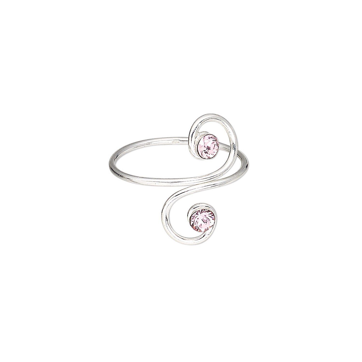 Toe ring, glass rhinestone and sterling silver, pink, 16mm wide with double spiral, adjustable. Sold individually.