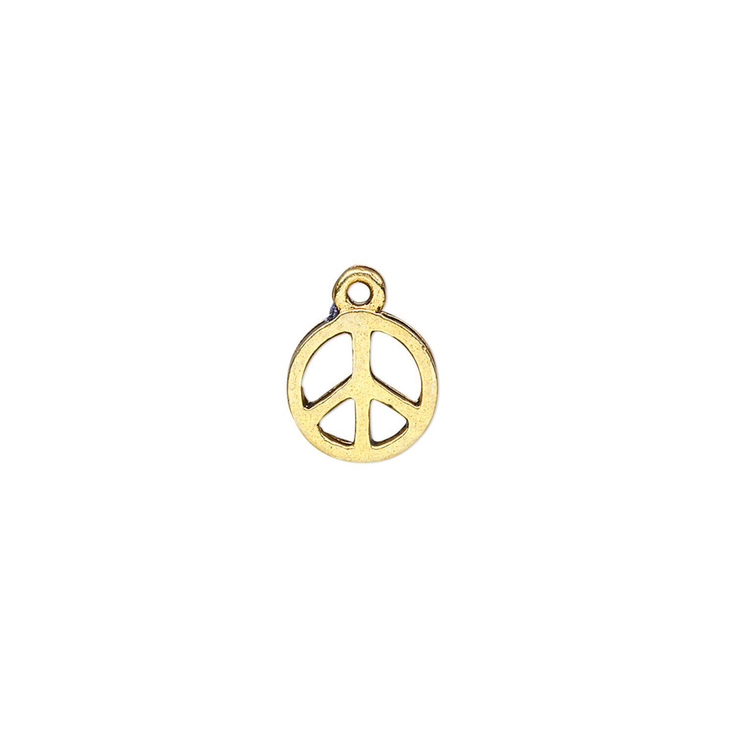 Charm, antique gold-finished "pewter" (zinc-based alloy), 9mm peace sign. Sold per pkg of 20.