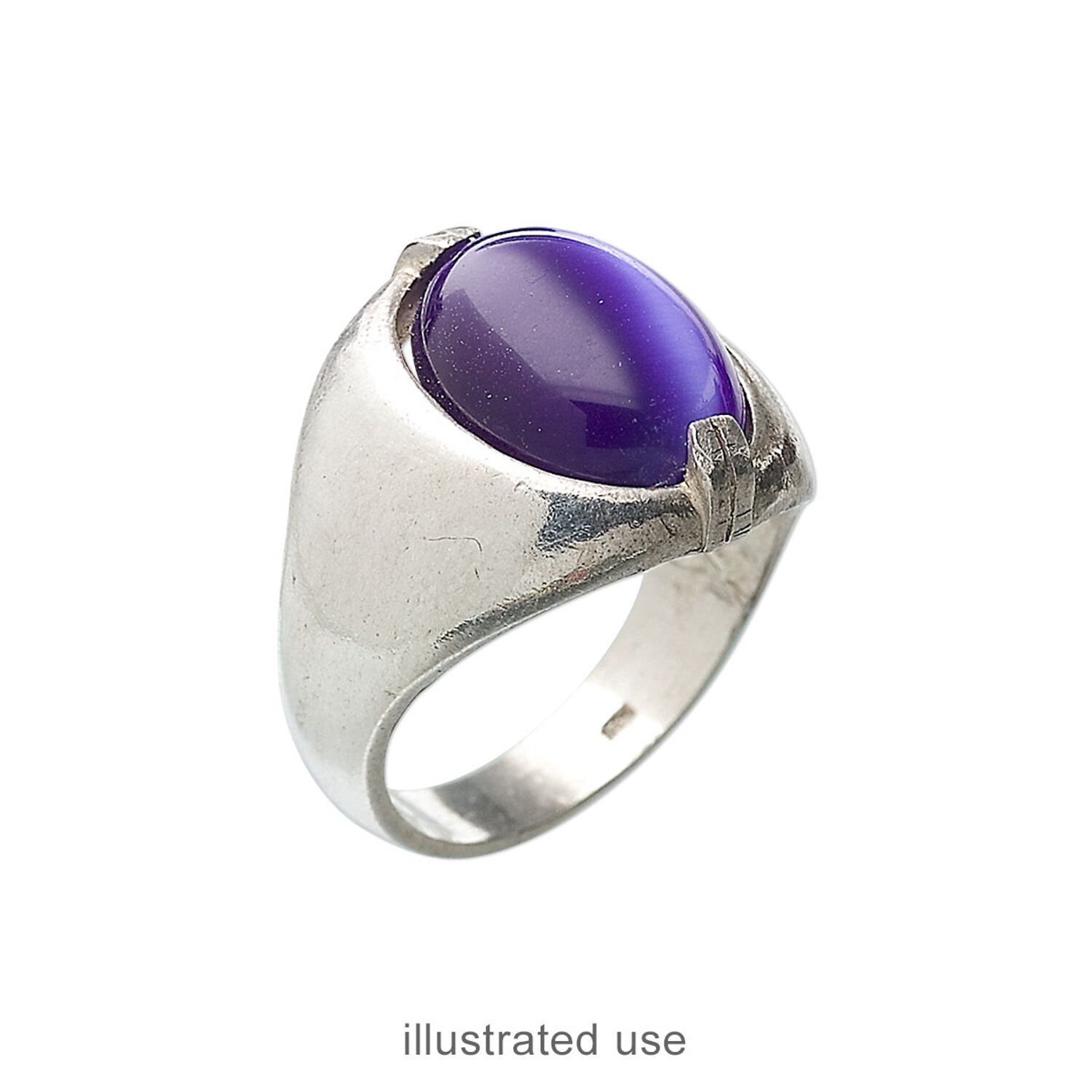 Ring setting cast in solid sterling silver is easy to set. Two-prong setting allows more light to enter through the back of the mounted stone, creating more sparkle. The dome design is ideal for setting a 14x10mm oval cabochon. Sizes may vary due to shrinkage during casting.
