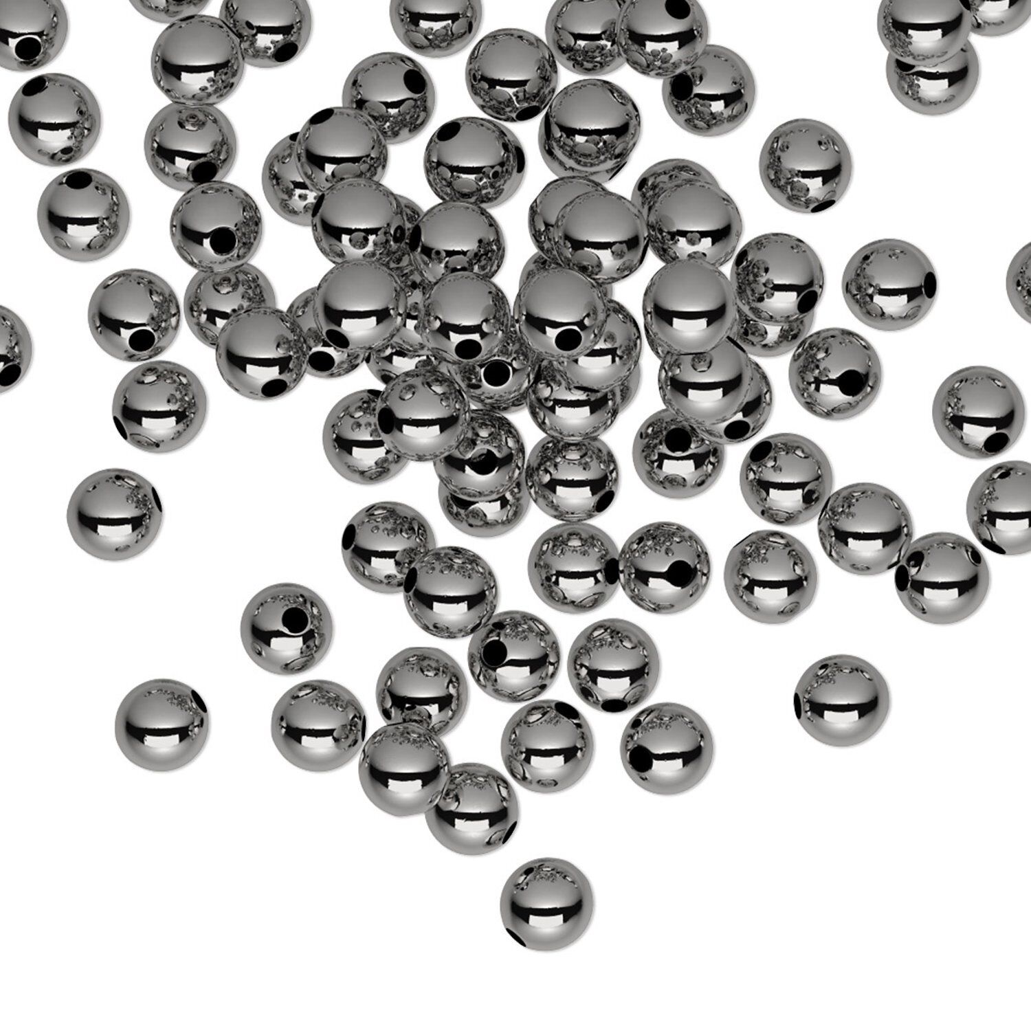 Bead, gunmetal-plated brass, 4mm round. Sold per pkg of 100.