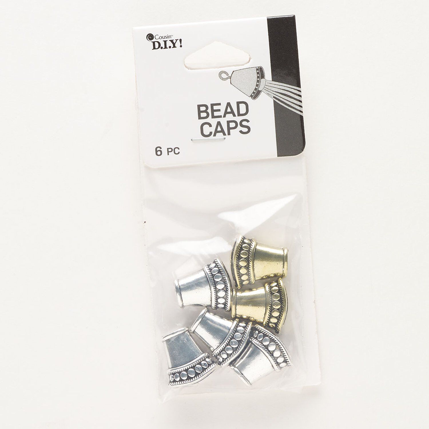 Cord end assortment, antique silver- and antique gold-finished "pewter" (zinc-based alloy), 16x15mm glue-in flat cone, 12.5x6mm inside diameter. Sold per pkg of 6.