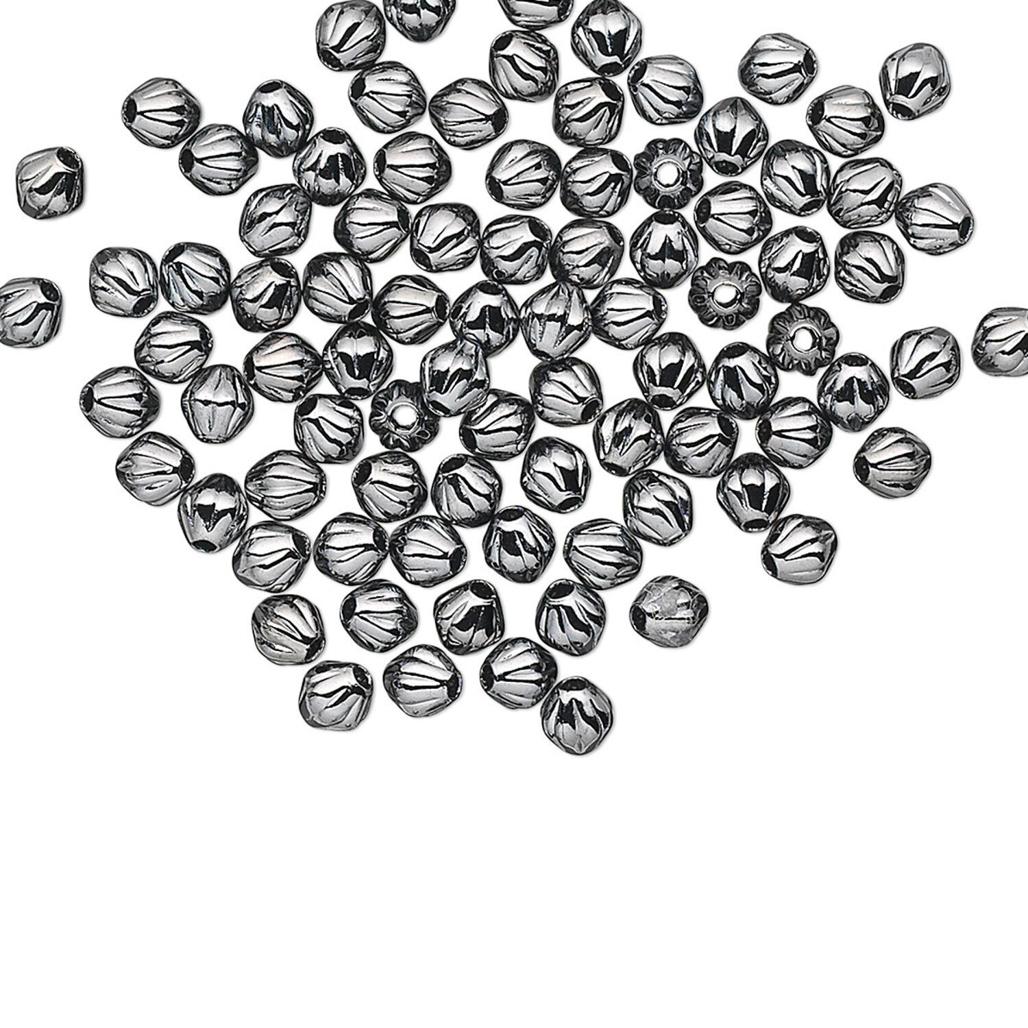 Neutral grey gunmetal plating over brass is a crowd-pleasing addition to jewelry designs. The corrugated surface adds visual drama to designs. The gunmetal plating gives these beads both a long-lasting shine and a resistance to tarnish.