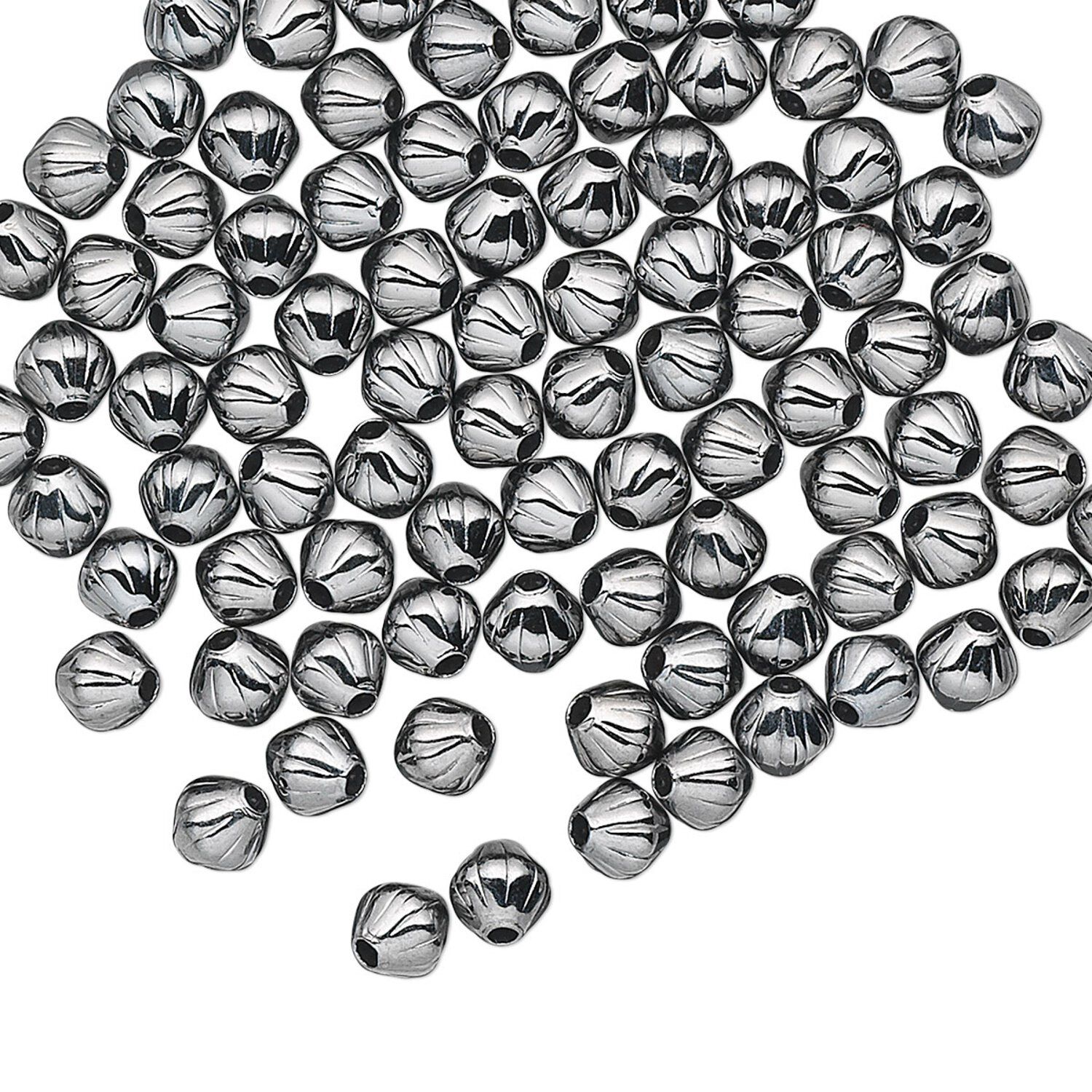 Neutral grey gunmetal plating over brass is a crowd-pleasing addition to jewelry designs. The corrugated surface adds visual drama to designs. The gunmetal plating gives these beads both a long-lasting shine and a resistance to tarnish.