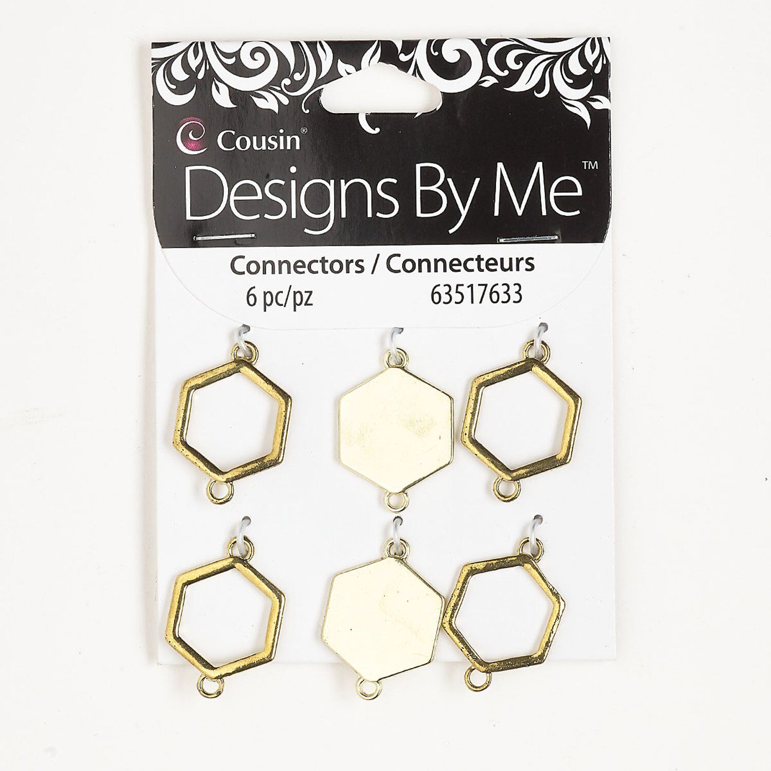 Link assortment, gold- and brass-finished "pewter" (zinc-based alloy) and brass, 18mm-19x17mm hexagon and open hexagon. Sold per pkg of 6.