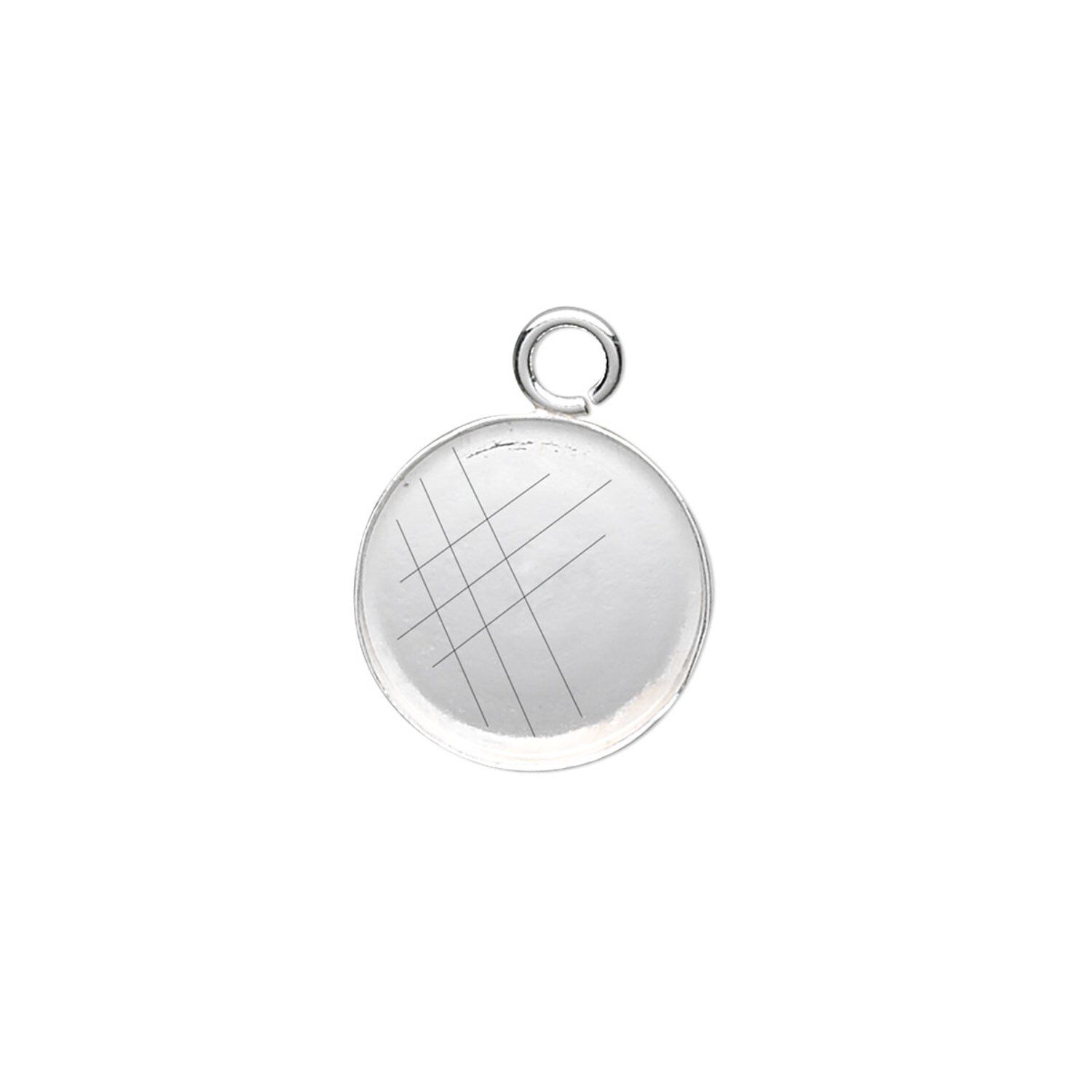 Drop, fine silver, 14mm round bezel cup setting with open loop. Sold per pkg of 2.