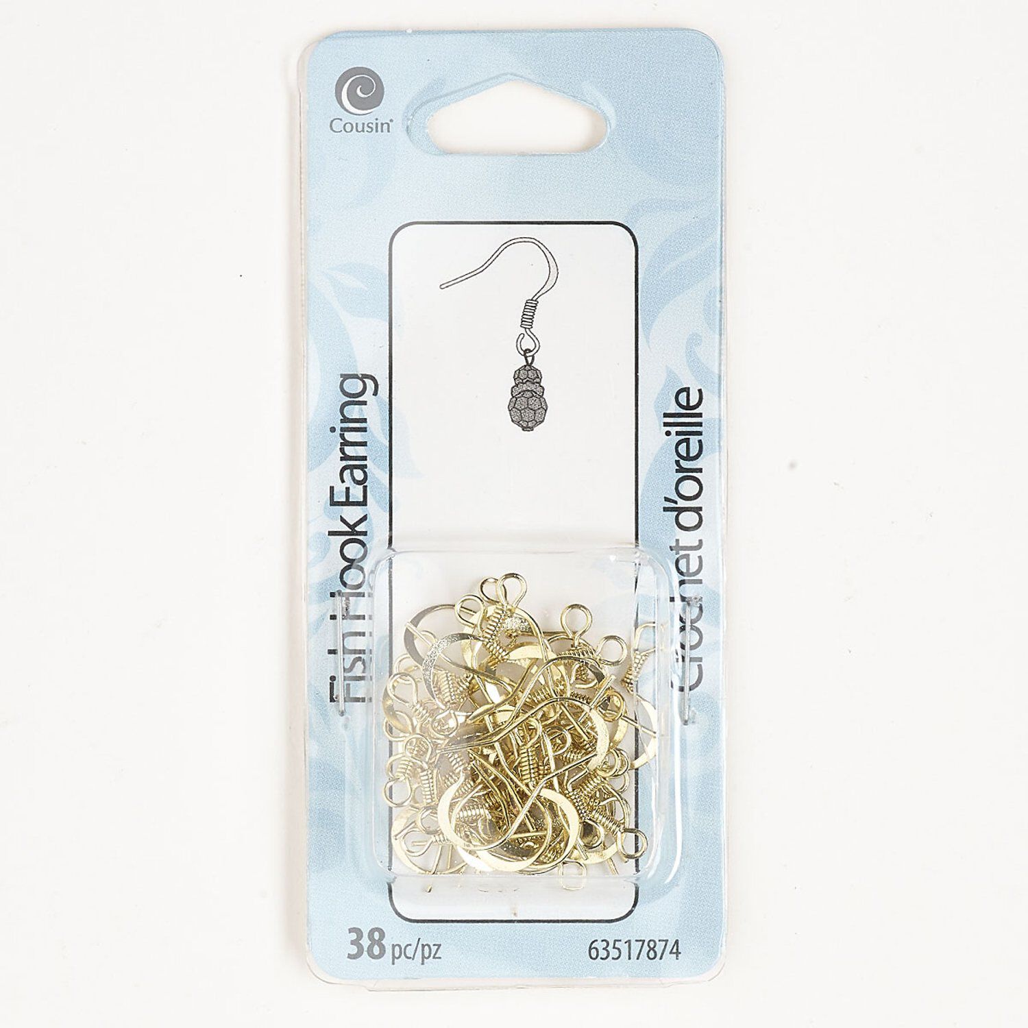 Ear wire fishhook 1pkg38, 13mm flat / 4mm coil / open loop, 22 gauge gold-finished steel 19 pair