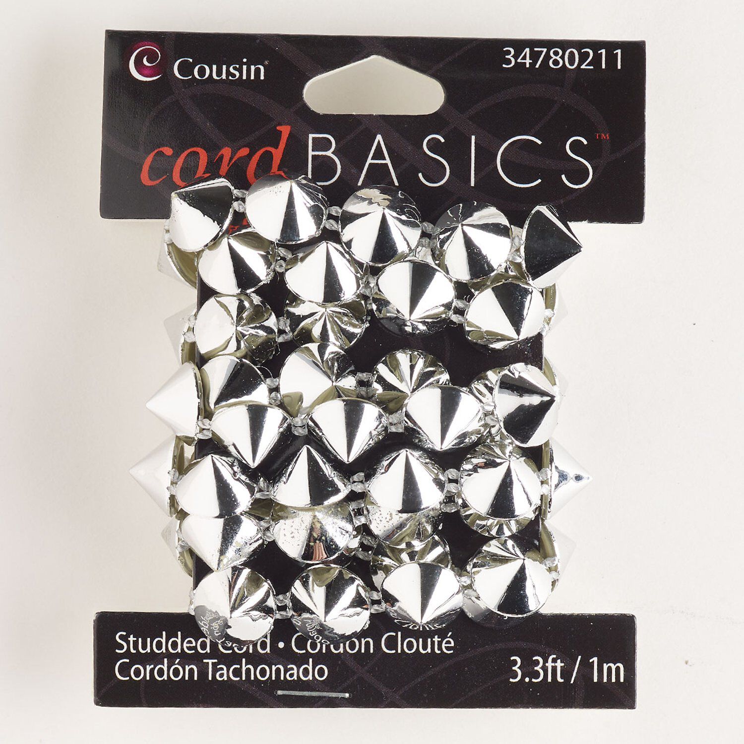 Cord, acrylic, silver, 11mm flat with round studs. Sold per pkg of 1 meter.
