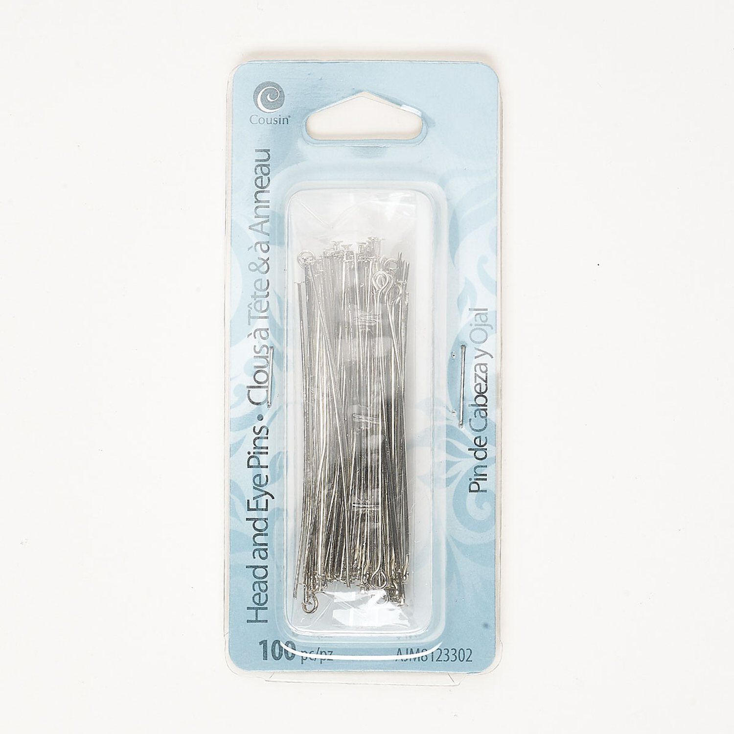 Head pin and eye pin mix, antique silver-finished steel, 2 inches, 21 gauge. Sold per pkg of 100.