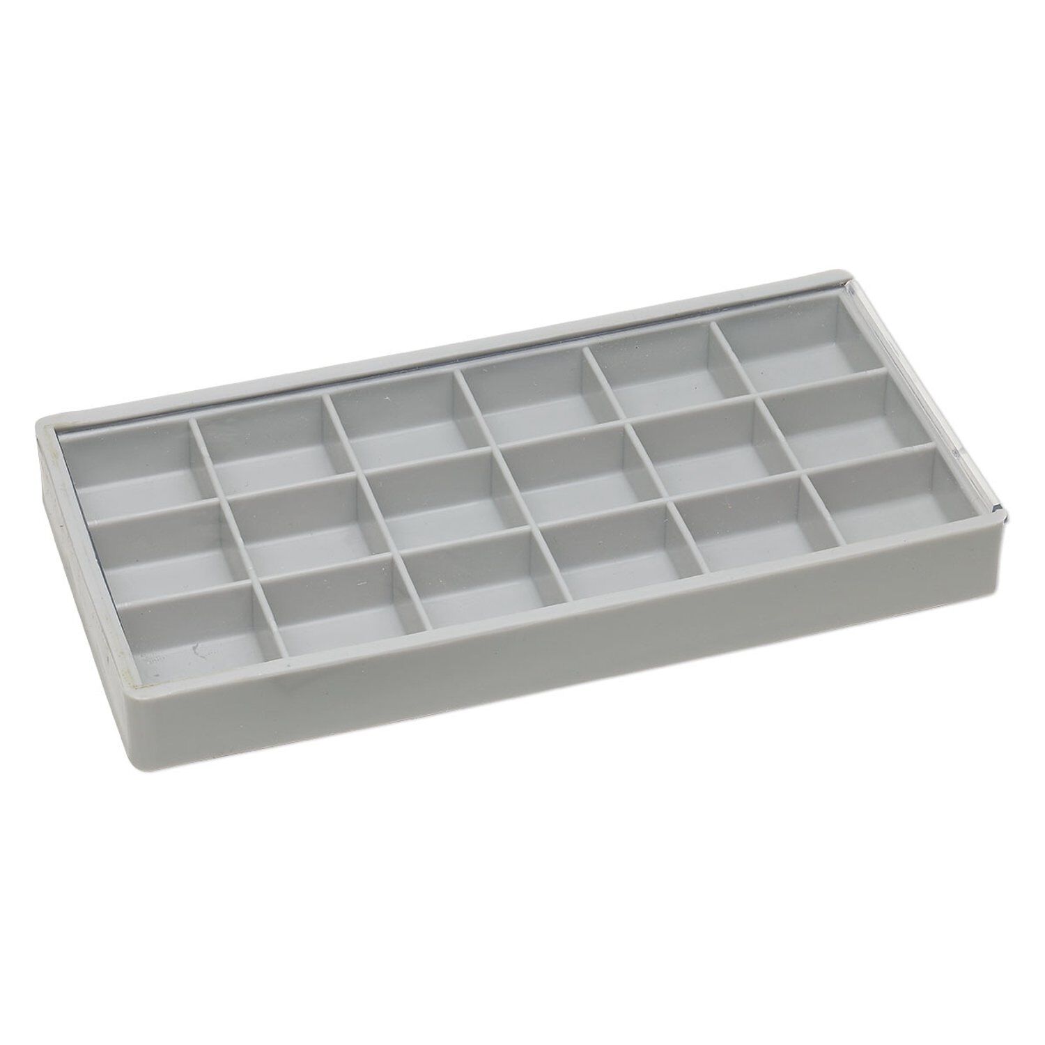 Storage box, 18-compartment, 7-1/2 inches long by 3-3/4 inches wide by 7/8 inch deep, sold individually.