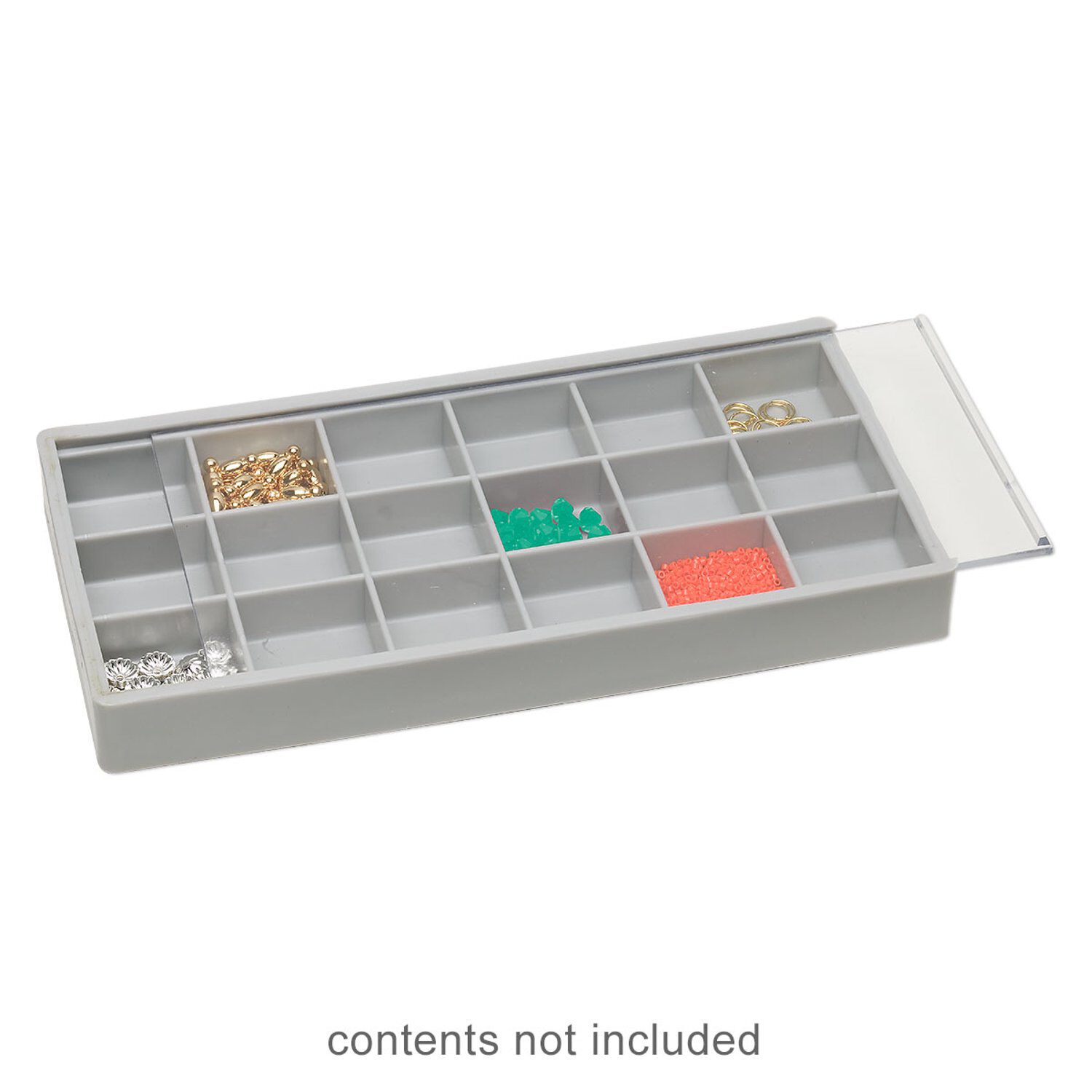 Clear sliding plastic top holds and displays your stones or beads. Top slides out for easy access, slides in for a secure hold.