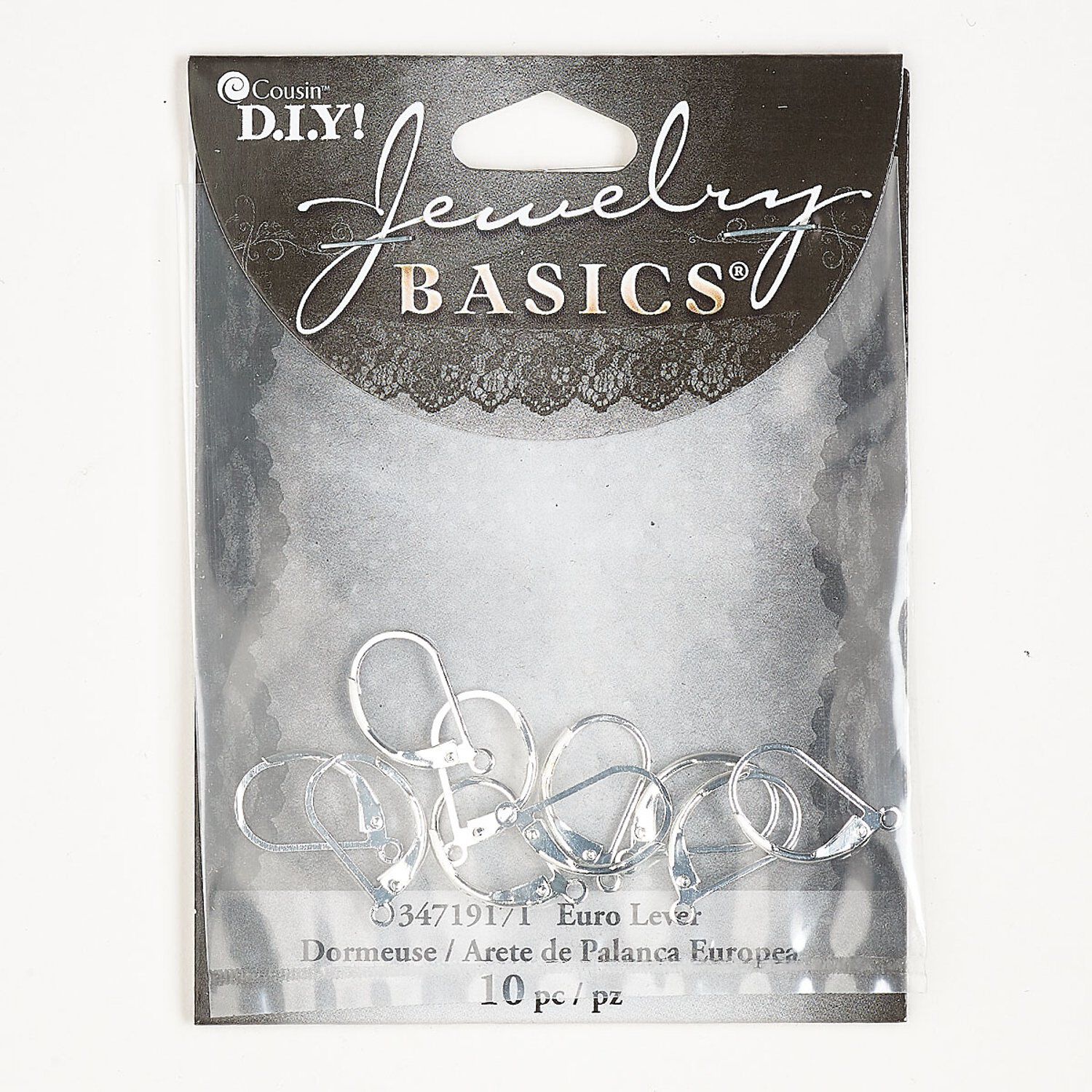 Ear wire leverback 1pkg10, 17mm / closed loop, silver-finished brass 5 pair