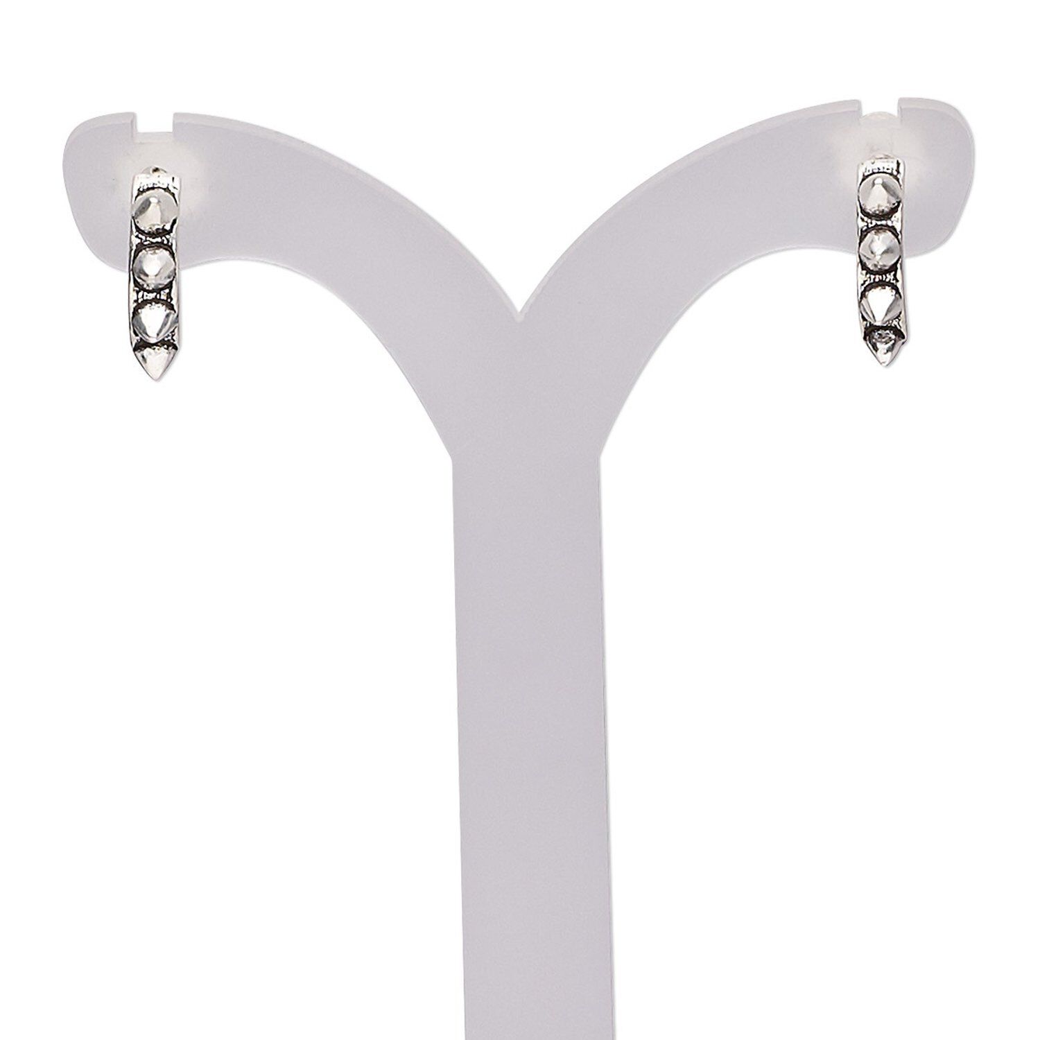 Earring, antiqued sterling silver, 10.5mm half hoop with spikes and post. Sold per pair.