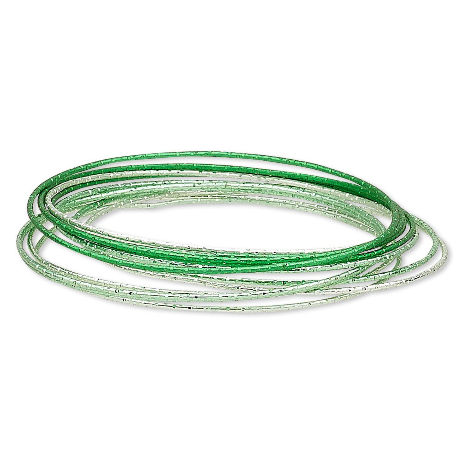 Bracelet, bangle, steel, light green / green / dark green, 1mm wide, 8 inches. Sold per 12-piece set.