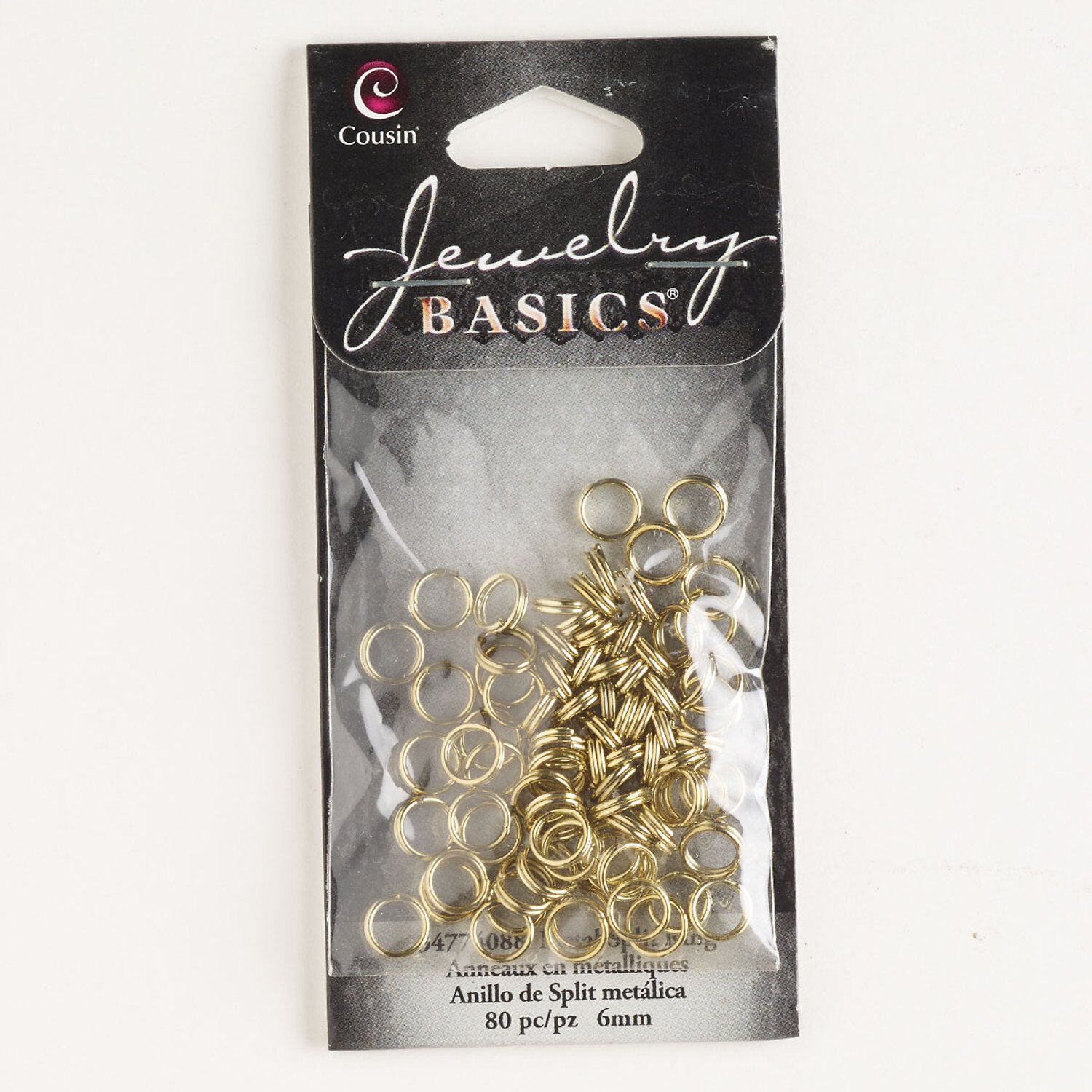 Split ring, gold-finished steel, 6mm round. Sold per pkg of 80.