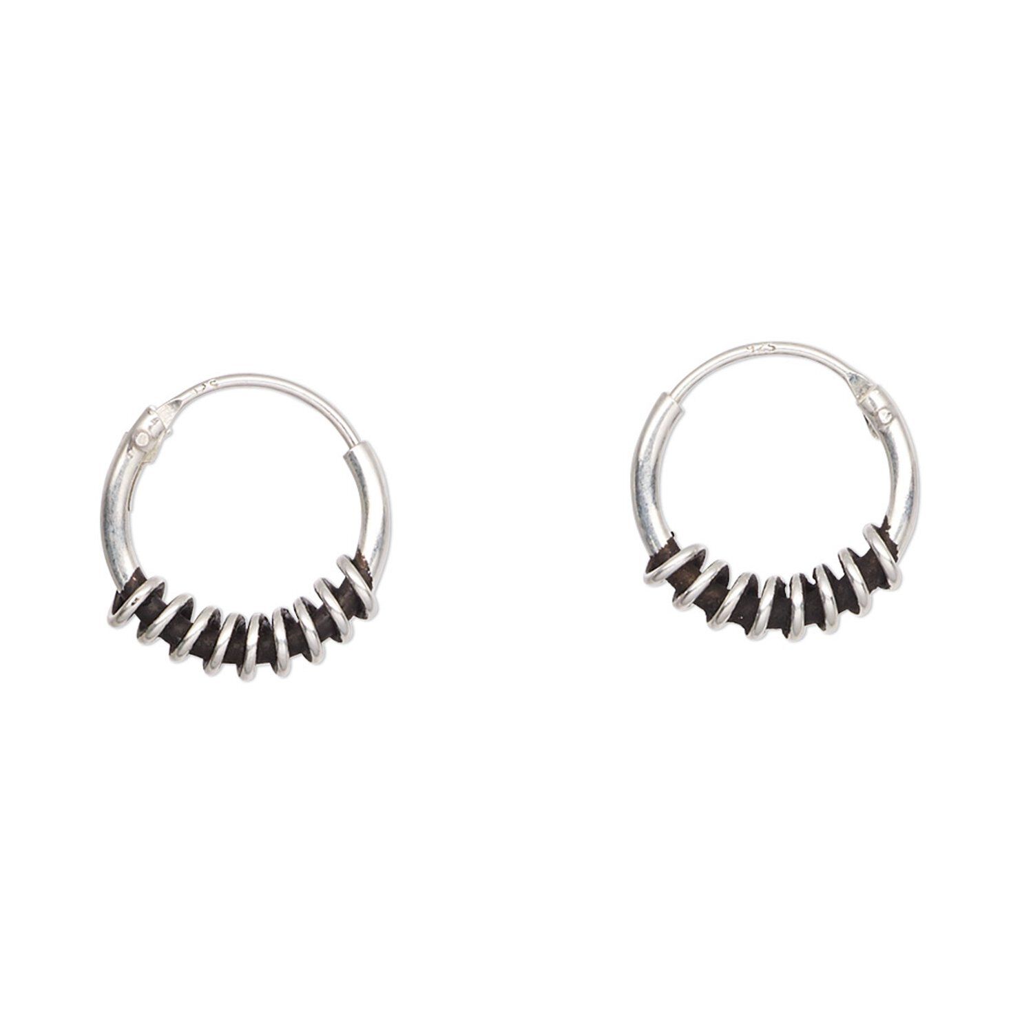Earring, antiqued sterling silver, 13mm wire-wrapped round hoop with endless-loop closure. Sold per pair.