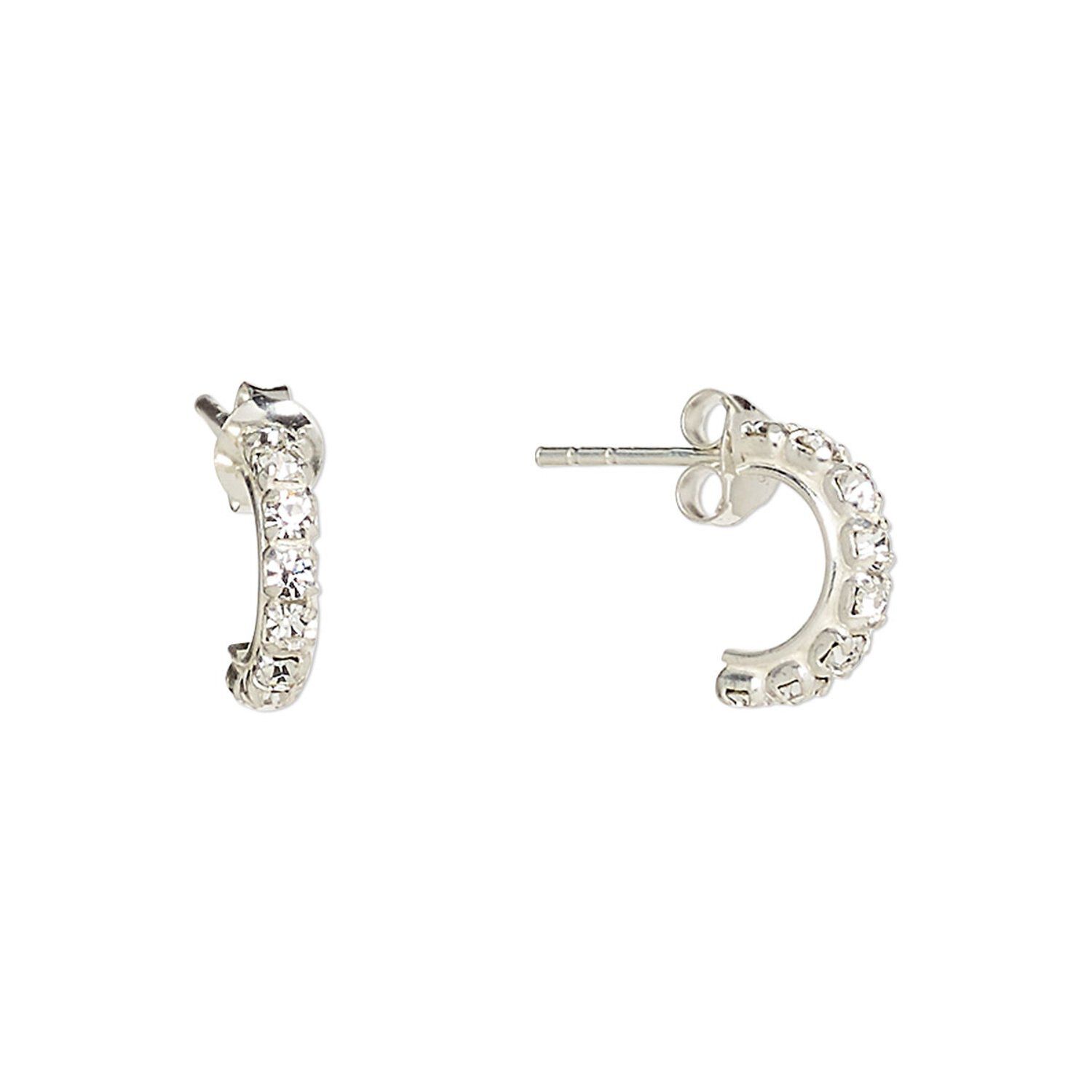 Earring, sterling silver and cubic zirconia, clear, 12mm half hoop with post. Sold per pair.