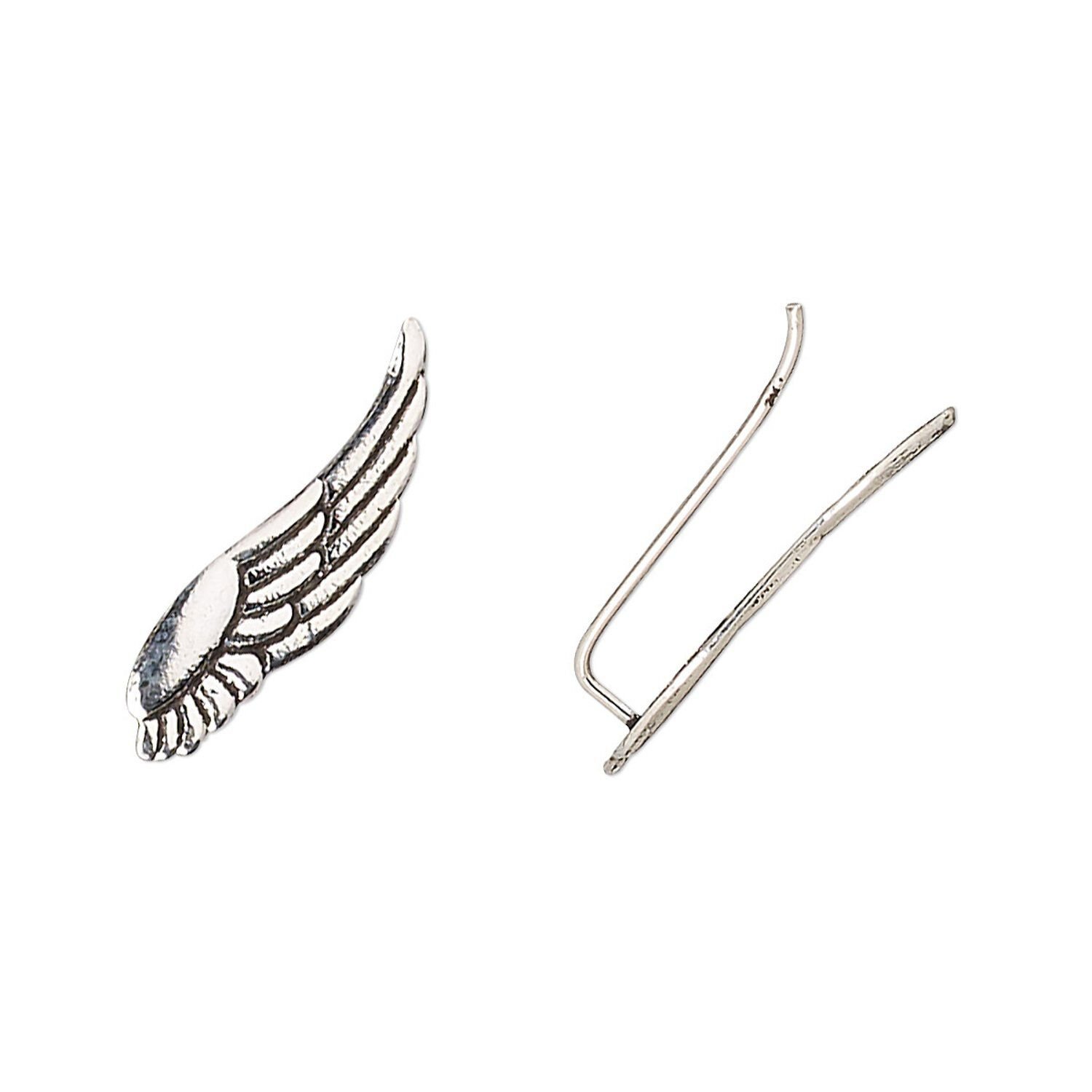 These sterling silver ear climber earrings have a graceful wing design. Ear climbers are worn with the design pointed upward, along the curve of your ear for a fun way to accessorize.