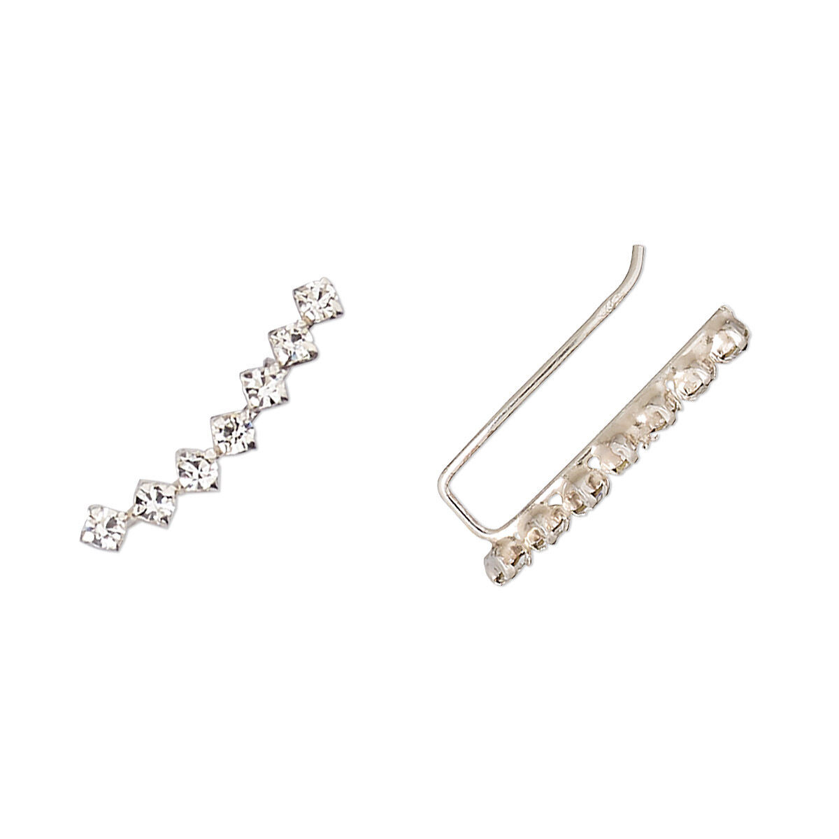 Earring, Create Compliments®, sterling silver and glass rhinestone, clear, 19x4mm left- and right-facing curved ear climber, 23 gauge. Sold per pair.