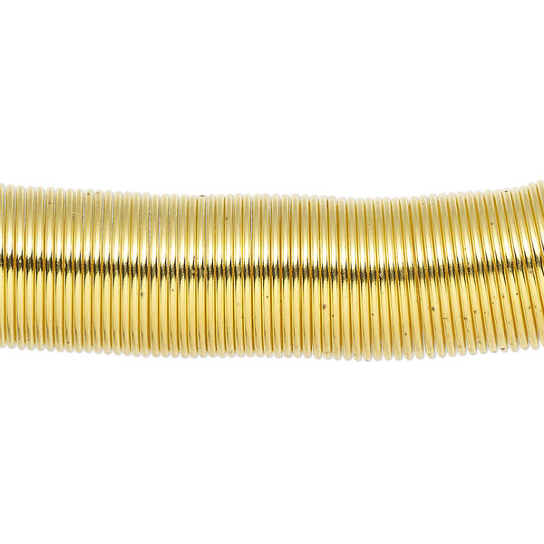 Gold-finished stainless steel memory wire is rigid, pre-coiled and it's easy to use. Just make a loop on one side, string on beads and finish with a loop or a half-drilled bead. Use in single loops or multi-loop combinations. Number of loops may vary depending on the thickness of the wire. Stainless steel memory wires do not retain as much memory as carbon steel. Due to the manufacturing process, wire may be in 3 or 4 sections.
