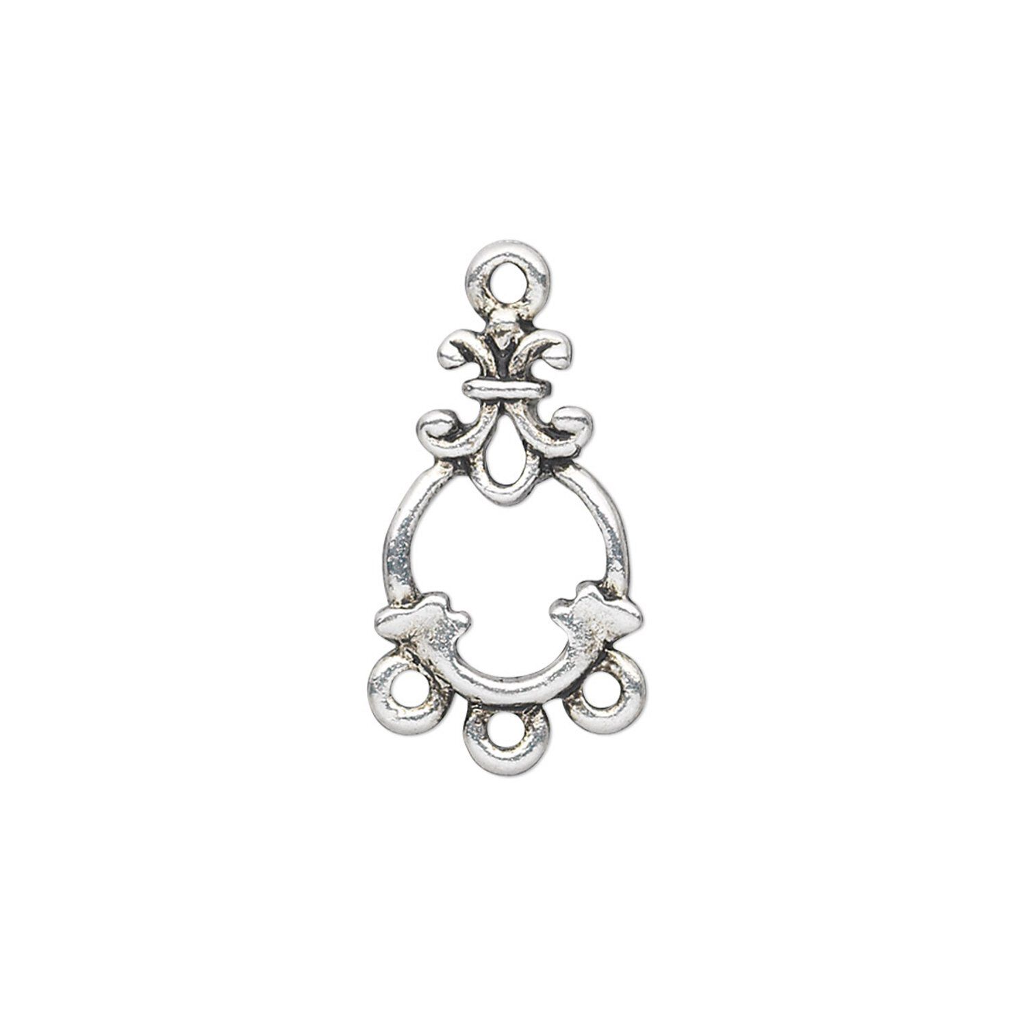 Drop, antique silver-plated "pewter" (zinc-based alloy), 16x12mm single-sided fancy teardrop with 3 loops. Sold per pkg of 10.