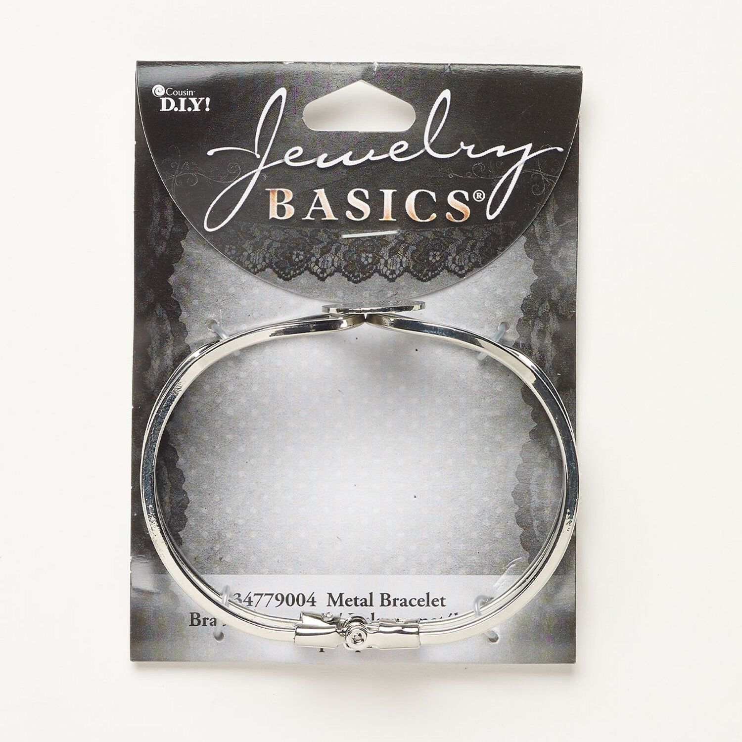 Bracelet, hinged cuff, silver-finished steel, 23mm wide with 16mm flat round mounting, 6-1/2 inches. Sold individually.