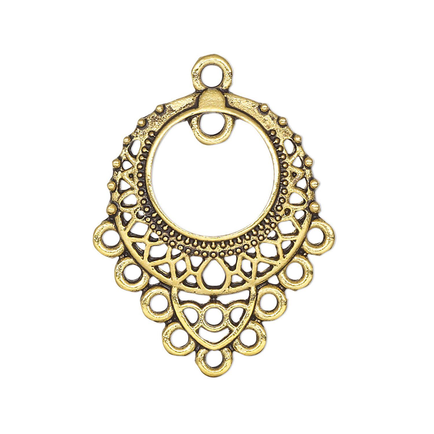 Drop, antique gold-finished "pewter" (zinc-based alloy), 26x23mm single-sided filigree with 10 loops. Sold per pkg of 10.