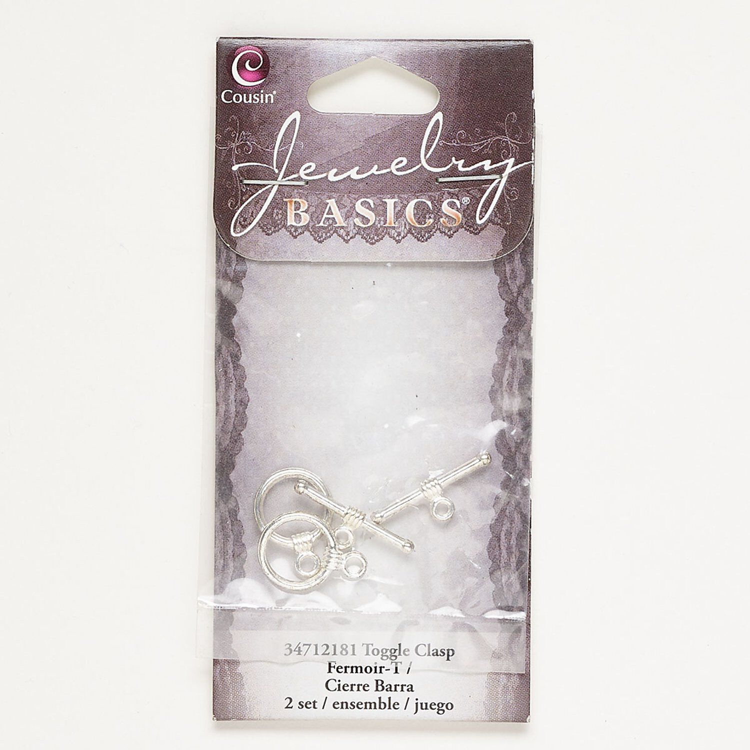 Clasp toggle 1pkg2 pewter (tin alloy), 16mm round, silver-finished 1-strand