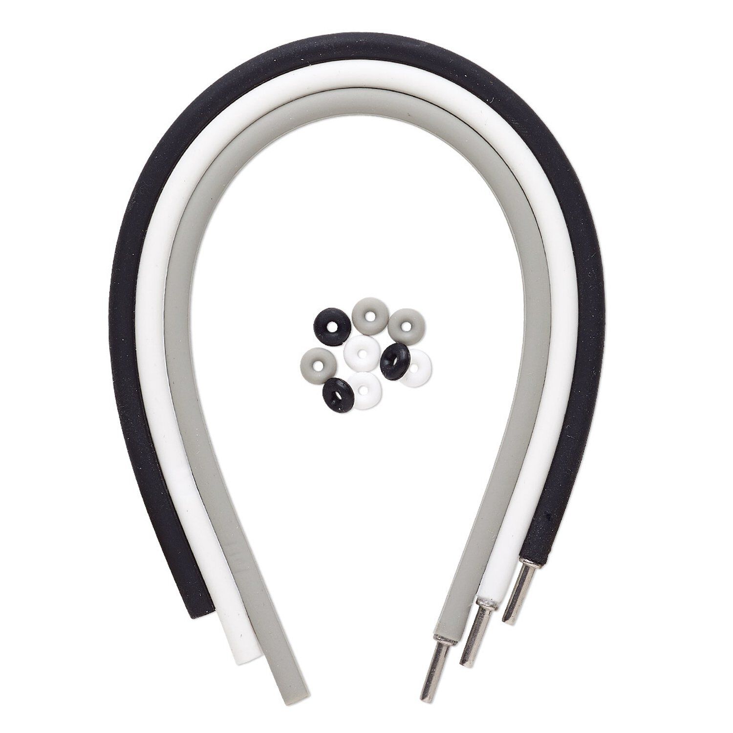Lightweight, stretchy silicone tube cords end with stainless steel tips for easy-open, easy-close jewelry. Colorfast silicone cords stay bright. Durable stainless steel stands the test of time, resisting rust, tarnish, oxidation, discoloration and corrosion. Cords are hollow on one end to customize length by trimming up to an inch. Each bracelet also includes four color-matched bead stoppers, so beads, slides or other embellishments are easy to place and keep in position.