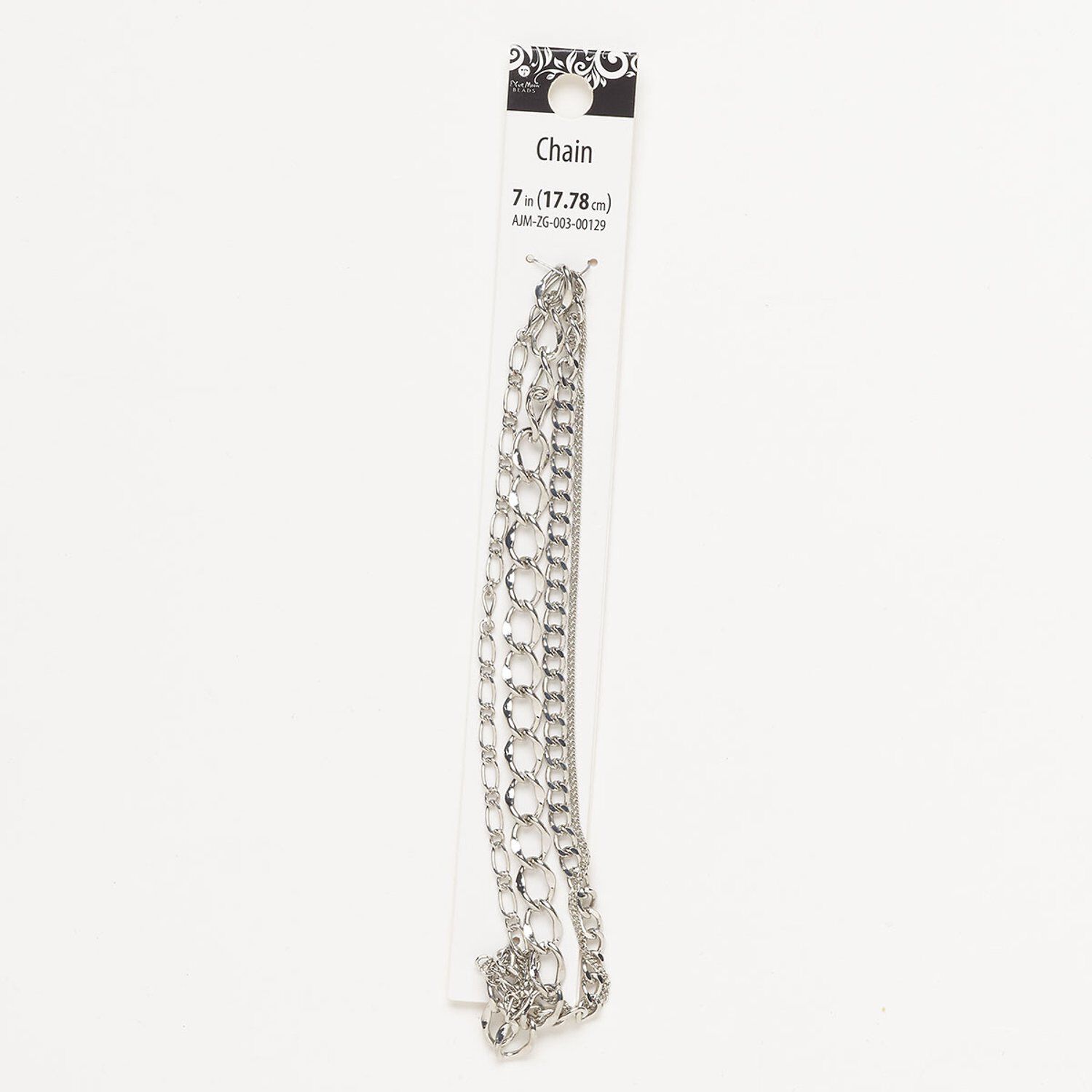 Chain assortment, silver-finished steel, assorted styles, 7 inches. Sold per pkg of 4.