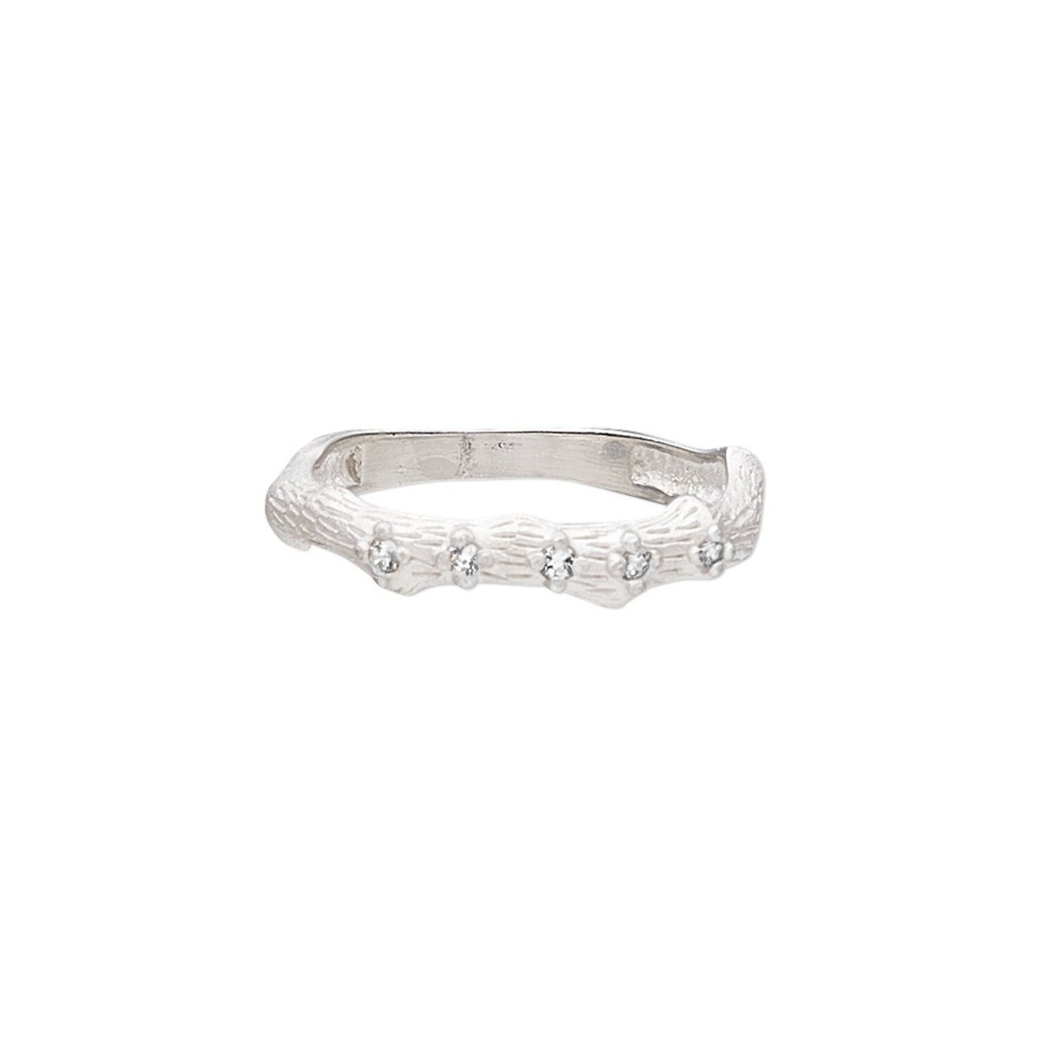 Ring, sterling silver and cubic zirconia, clear, 4mm wide with matte-finished bamboo design, size 7. Sold individually.